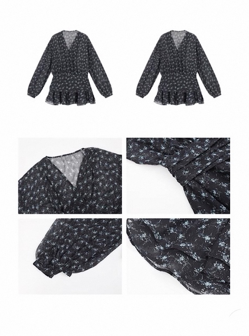 여성을위한 프랑스 얇은 꽃 무늬 v 넥 쉬폰 셔츠 2025 여름 새로운 스타일 허리 슬리밍 복고풍 긴팔 셔츠스토어 가기