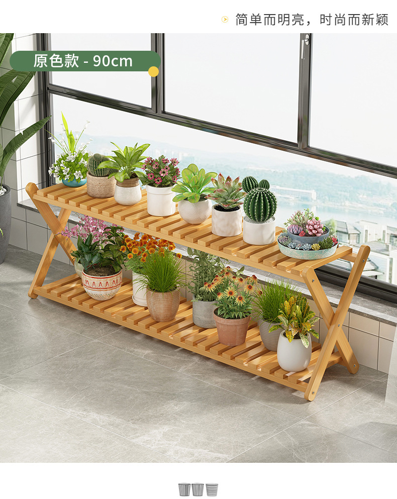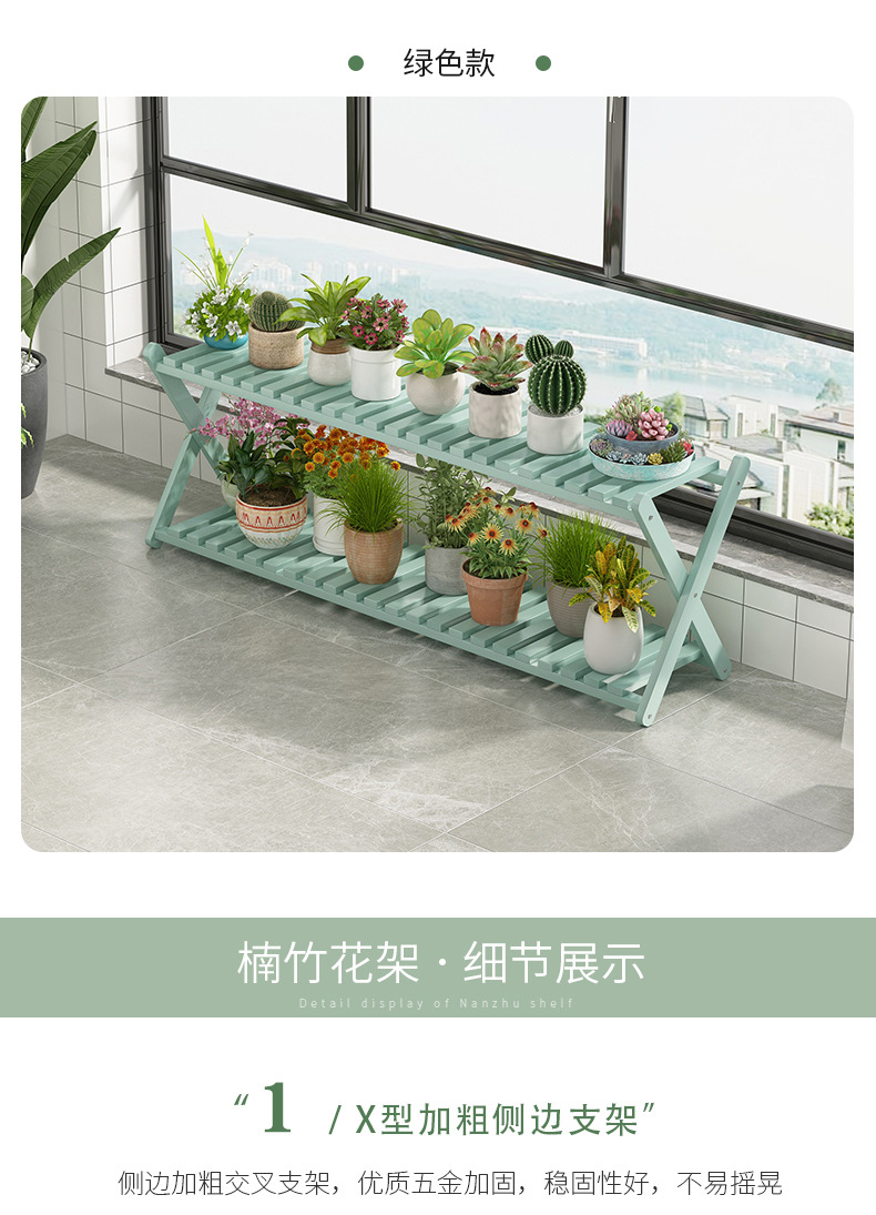 꽃 선반 보관함 발코니 실내 다층 바닥에서 천장까지 올려진 녹색 꽃 선반 부식 방지 목재 인터넷 연예인 창틀 화분 선반