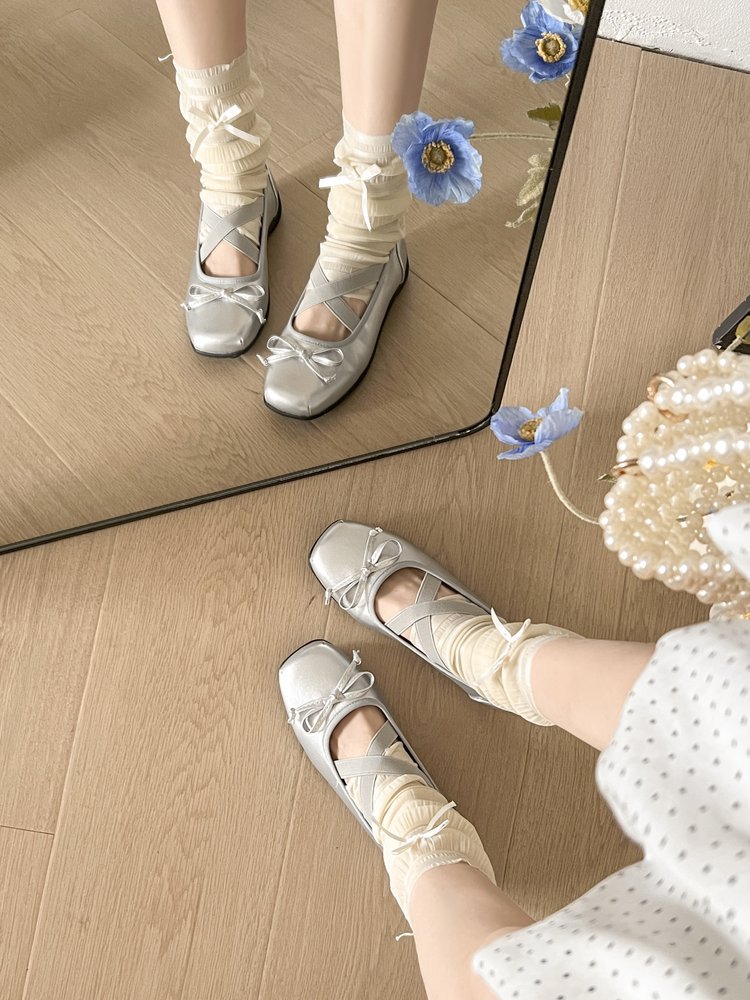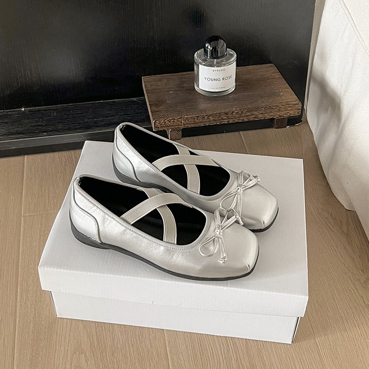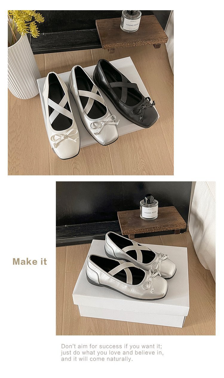여성을위한 블랙 프렌치 발레 스타일 스퀘어 토 플랫 슈즈 2025 여름 새로운 스타일 스커트 다용도 메리 제인 슈즈