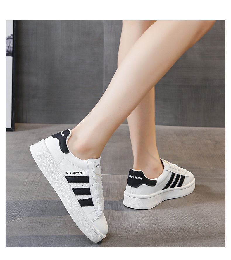여성용 두꺼운 밑창 강화 도덕 훈련 신발, 3색 배색 플랫 운동화, 학생용 초인기 개학 운동화스토어 가기
