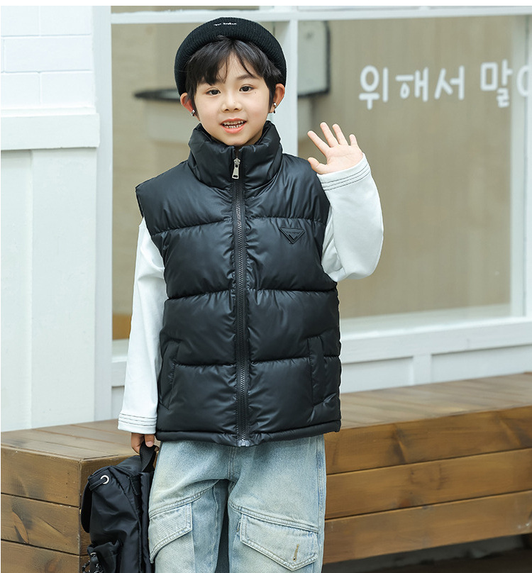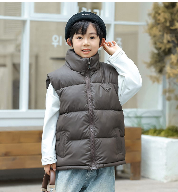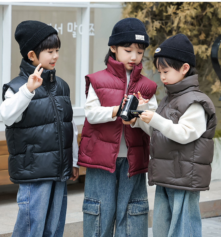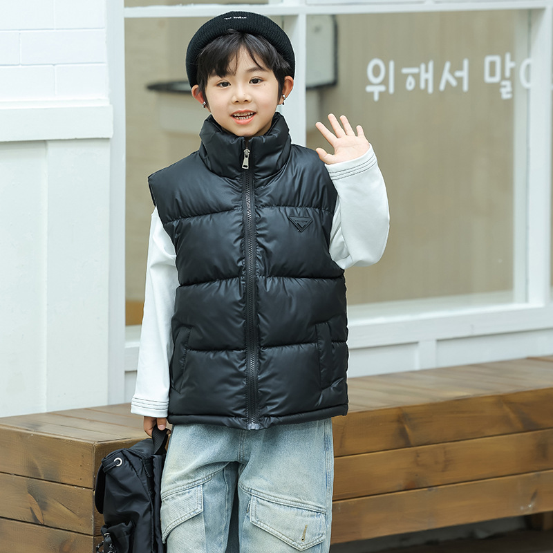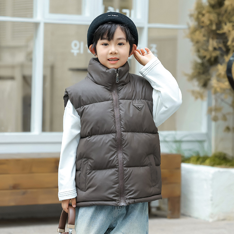스탠드 칼라 면 조끼 남아용 두꺼운 세탁 불필요 조끼 중대형 어린이용 외출용 스포츠용 소형 어린이용 외출용