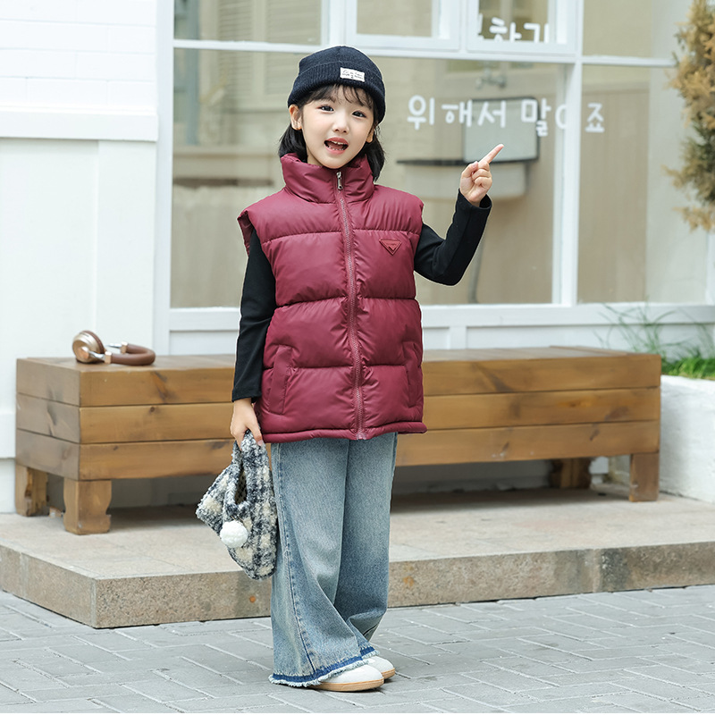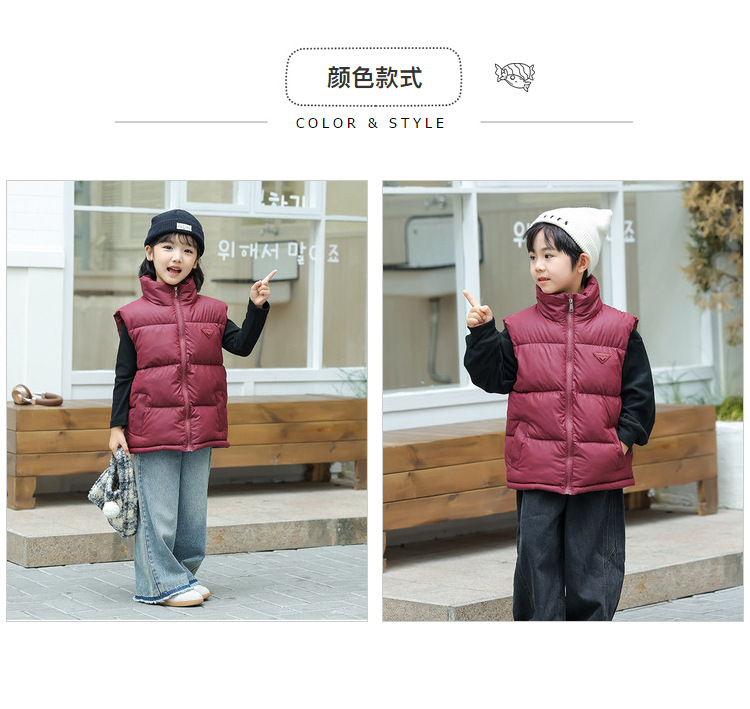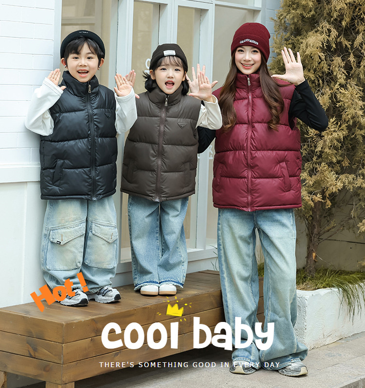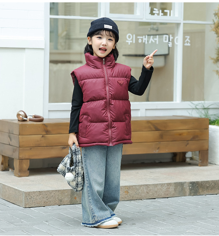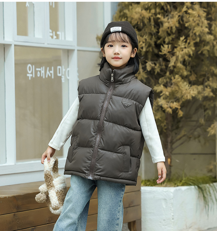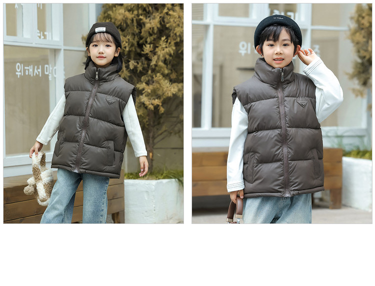 스탠드 칼라 면 조끼 남아용 두꺼운 세탁 불필요 조끼 중대형 어린이용 외출용 스포츠용 소형 어린이용 외출용