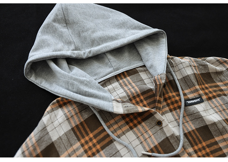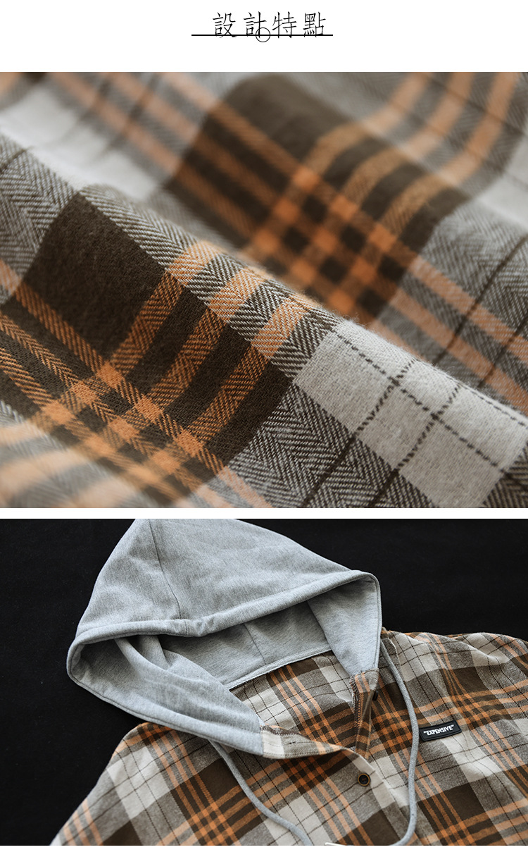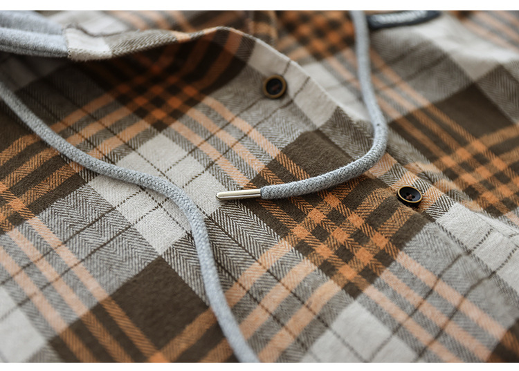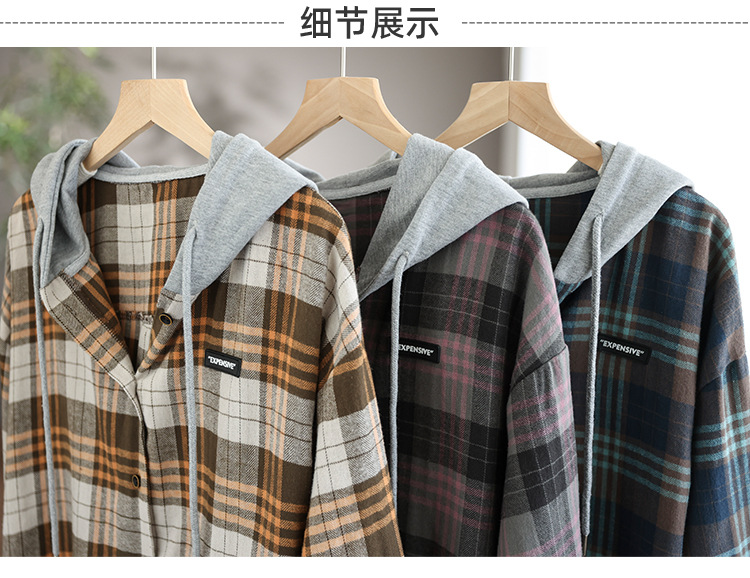 가을 싱글 브레스트 격자 무늬 얇은 기모 긴팔 셔츠 여성 예술적 캐주얼 대형 캐주얼 후드 셔츠스토어 가기