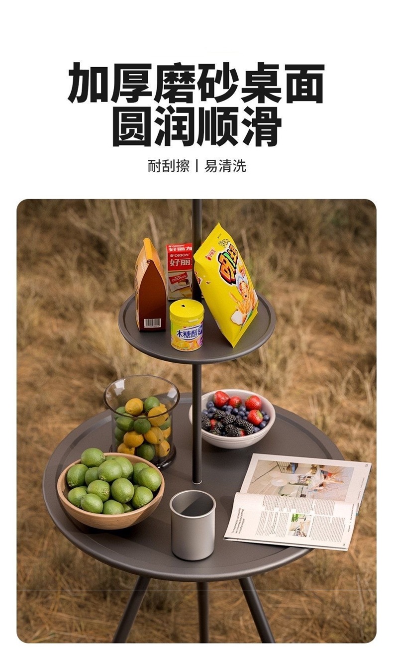 야외 접이식 캠핑 테이블, 휴대용 소형 원형 테이블, 피크닉 캠핑 장비, 커피 테이블, 조명 스탠드가 있는 이중층 리프팅 테이블