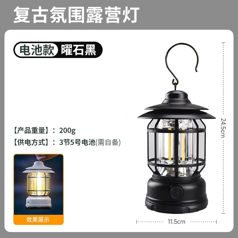• 옵시디언 블랙 [레트로 분위기 조명] 캠핑 걱정 없는 배터리 모델 D 캠핑 램프 [배터리 지참]