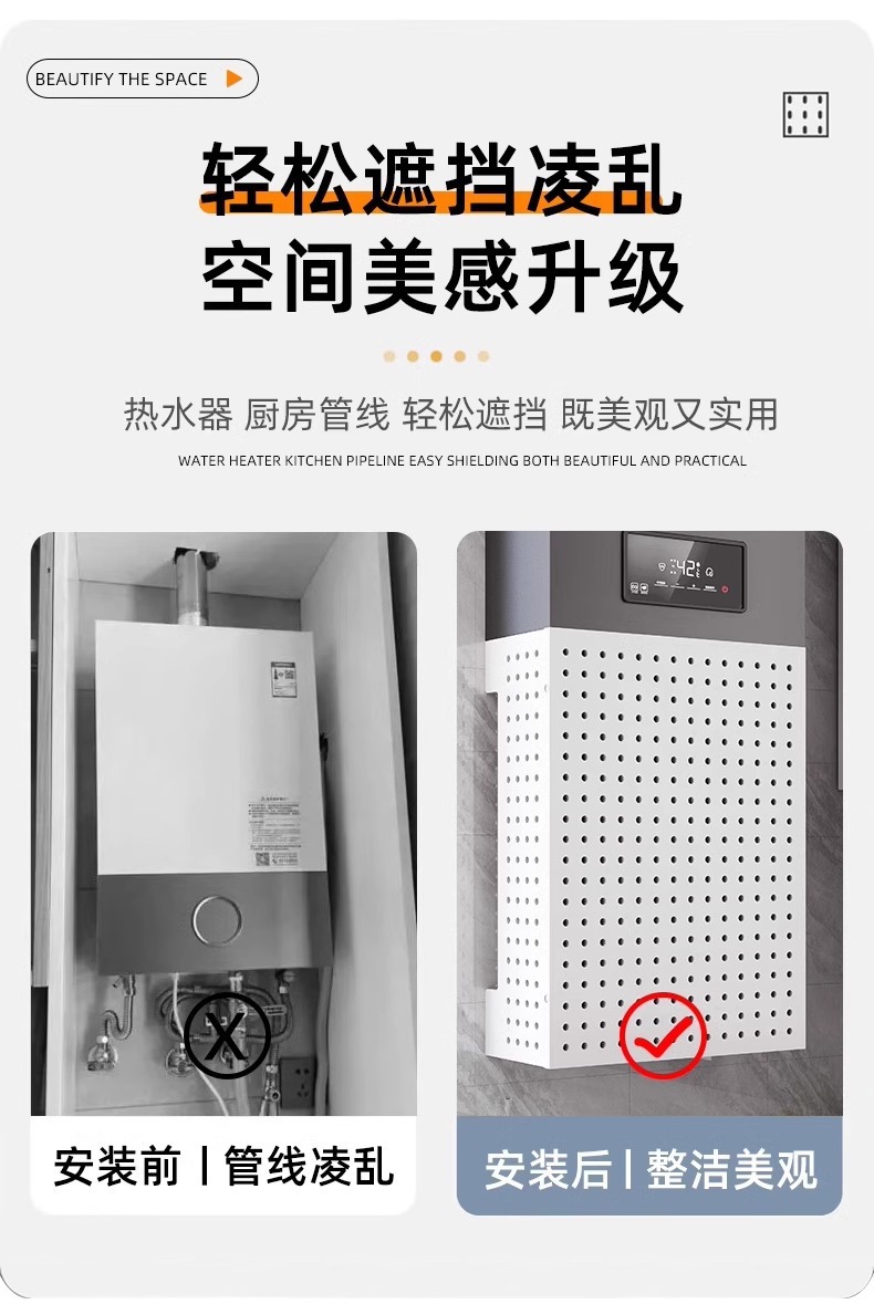 주방용 홀보드 수납선반, 가스파이프 온수기 커버, 펀치 없는 벽걸이형 파이프 커버스토어 가기