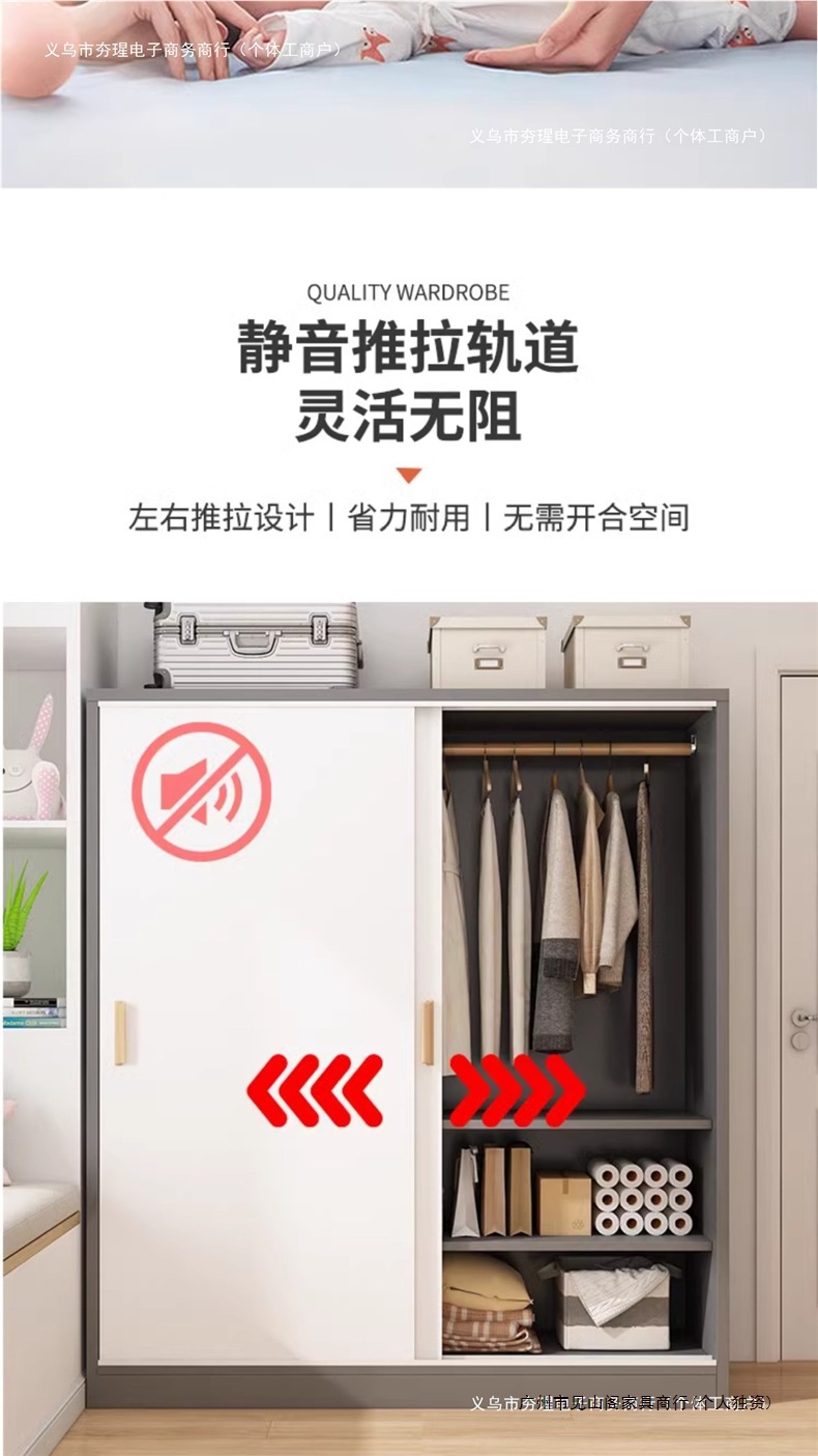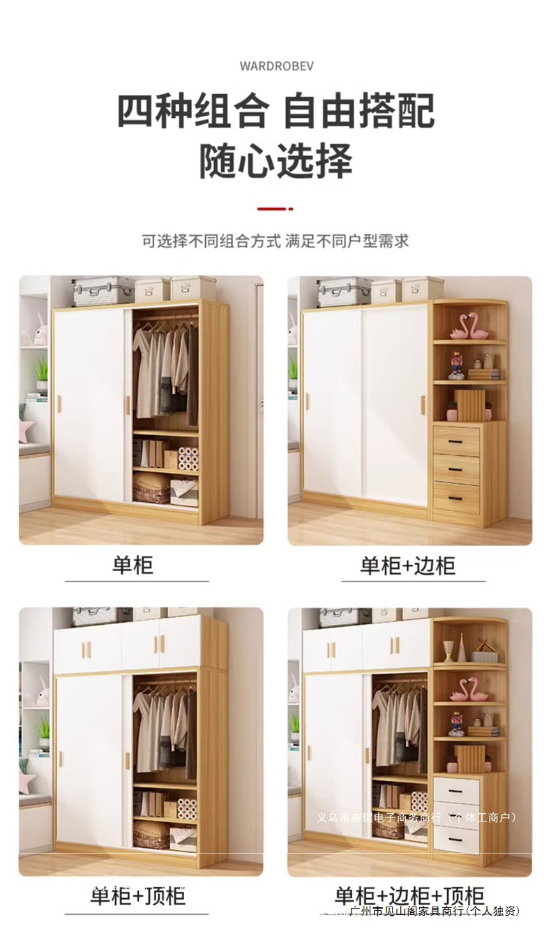 가정용 침실을 위한 간단한 옷장, 작은 아파트 조립식 사물함, 임대 주택을 위한 새로운 두꺼운 슬라이딩 도어 옷장