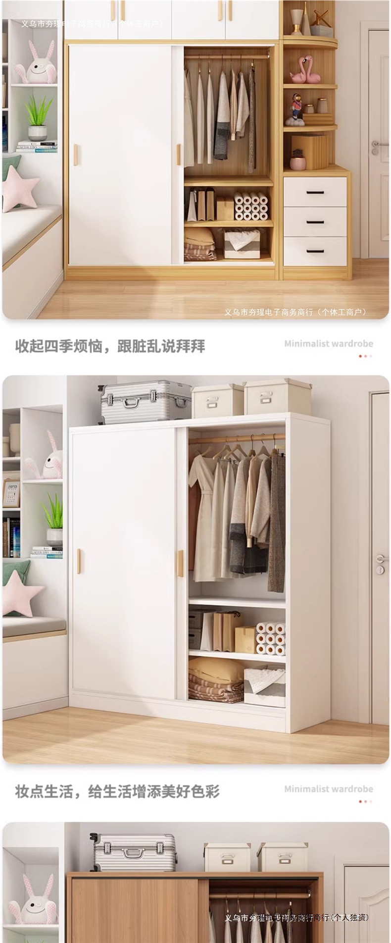 가정용 침실을 위한 간단한 옷장, 작은 아파트 조립식 사물함, 임대 주택을 위한 새로운 두꺼운 슬라이딩 도어 옷장스토어 가기