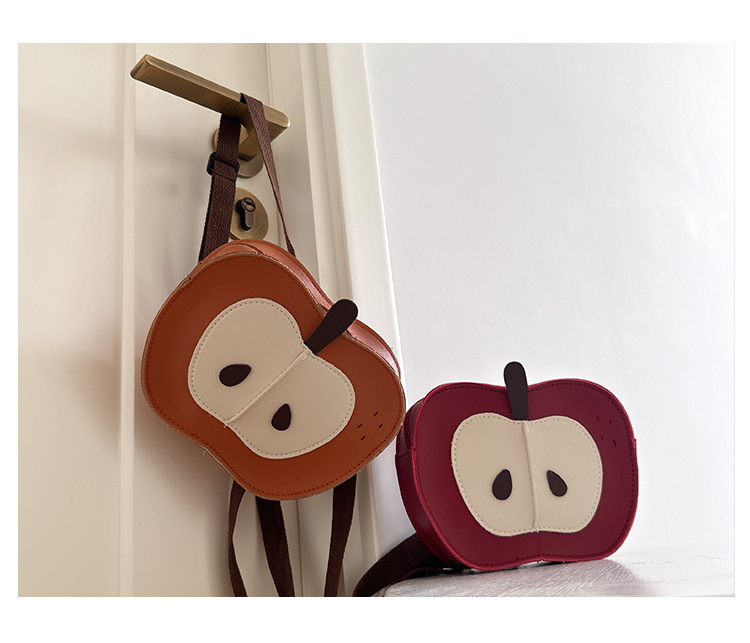 원래 디자인 새로운 어린이 귀여운 과일 사과 PU 가죽 작은 배낭 소년과 소녀 아기 배낭 도매