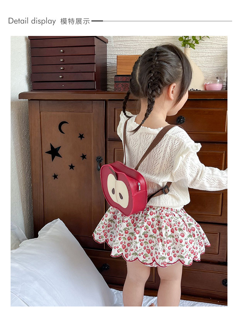 원래 디자인 새로운 어린이 귀여운 과일 사과 PU 가죽 작은 배낭 소년과 소녀 아기 배낭 도매스토어 가기