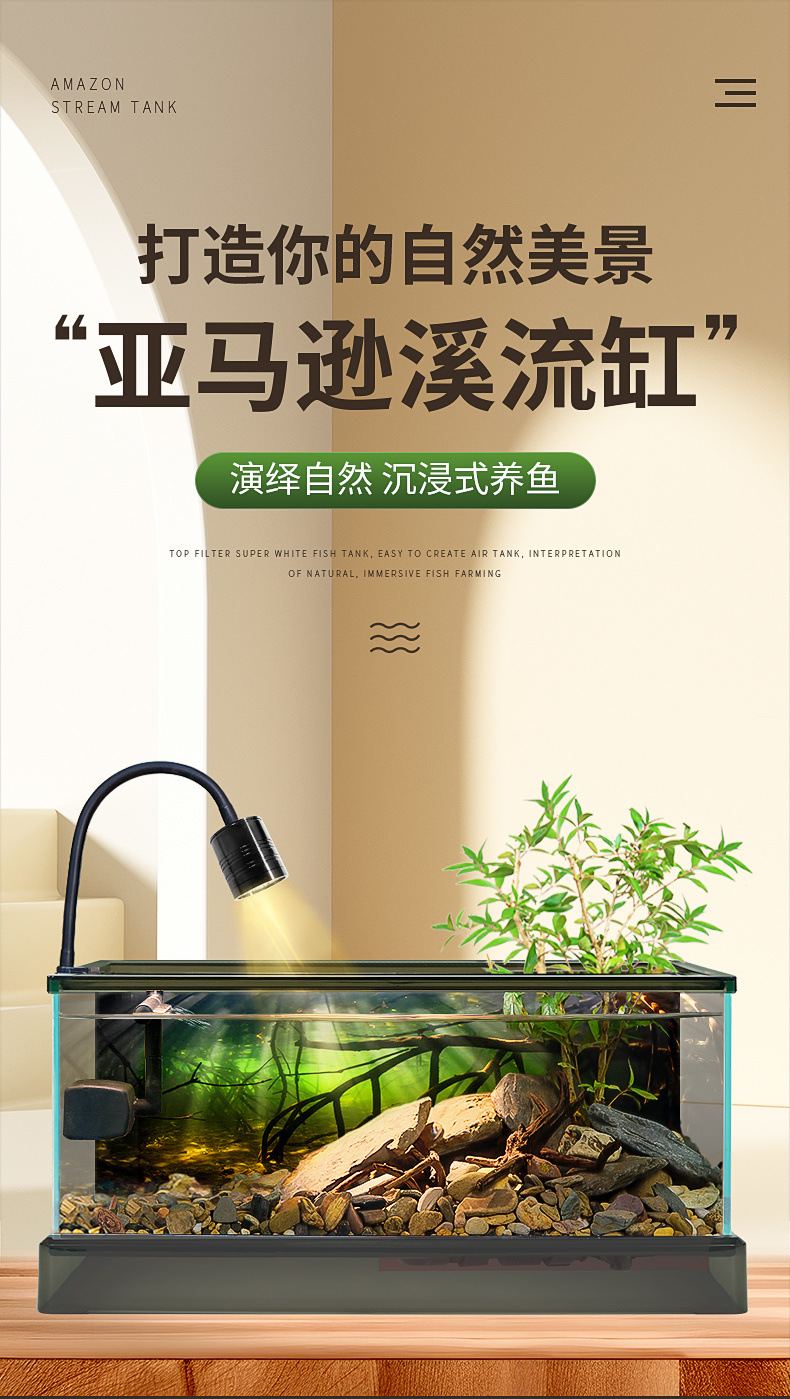 남미 스트림 탱크 새로운 유리 수조 네이티브 조경 홈 거실 작은 황금 생태 거북이 탱크 도매 핫 세일