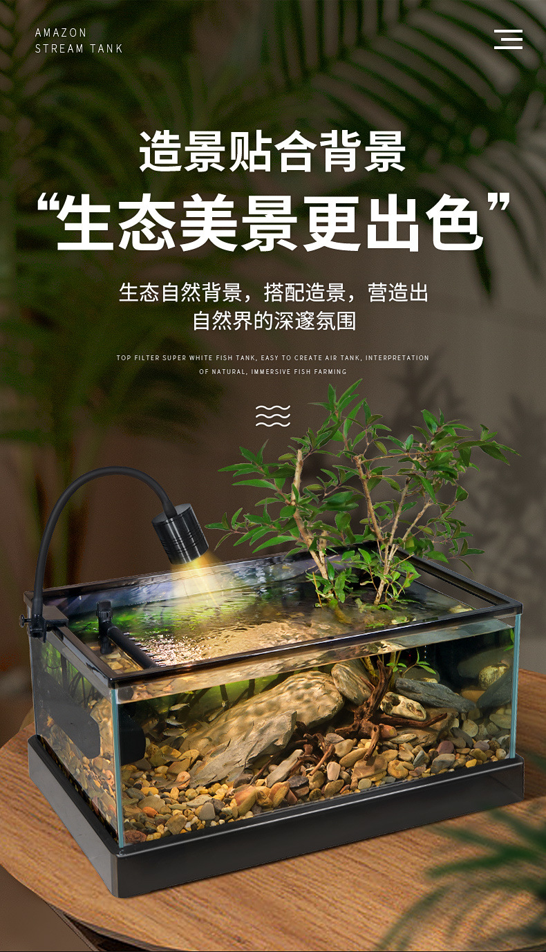 남미 스트림 탱크 새로운 유리 수조 네이티브 조경 홈 거실 작은 황금 생태 거북이 탱크 도매 핫 세일스토어 가기