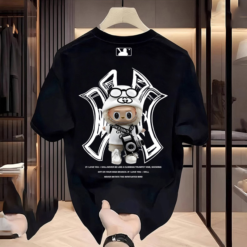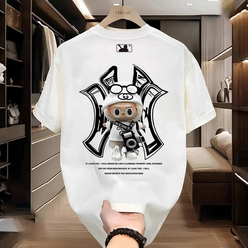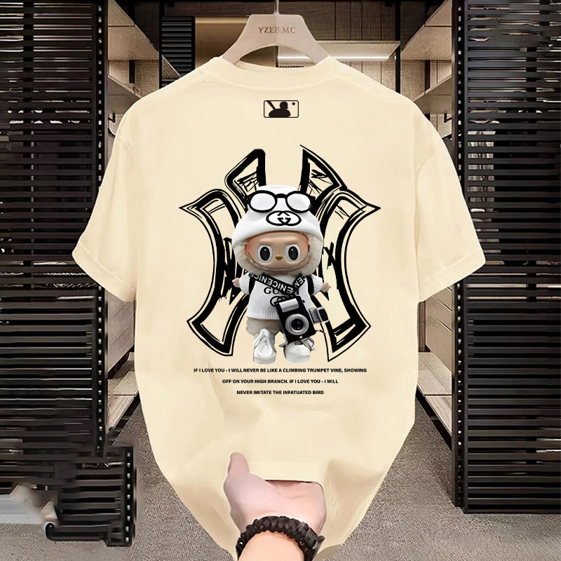 남성용 헤비급 순면 반팔 티셔츠 여름 2025 새로운 공동 브랜드 라부 루즈 캐주얼 반팔 셔츠