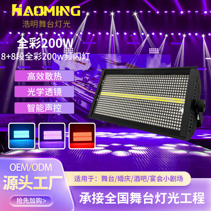 8+8 세그먼트 풀 컬러 200w 스트로브 라이트 RGB 라이브 방송실 배경 분위기 염색 라이트 바 나이트 클럽 무대 마카롱