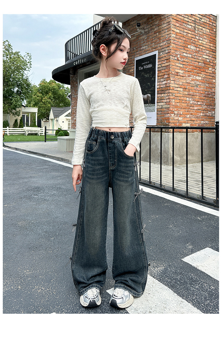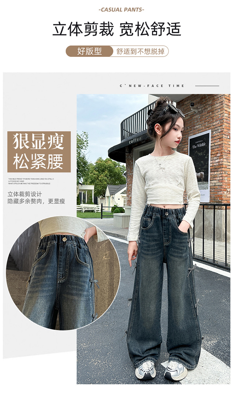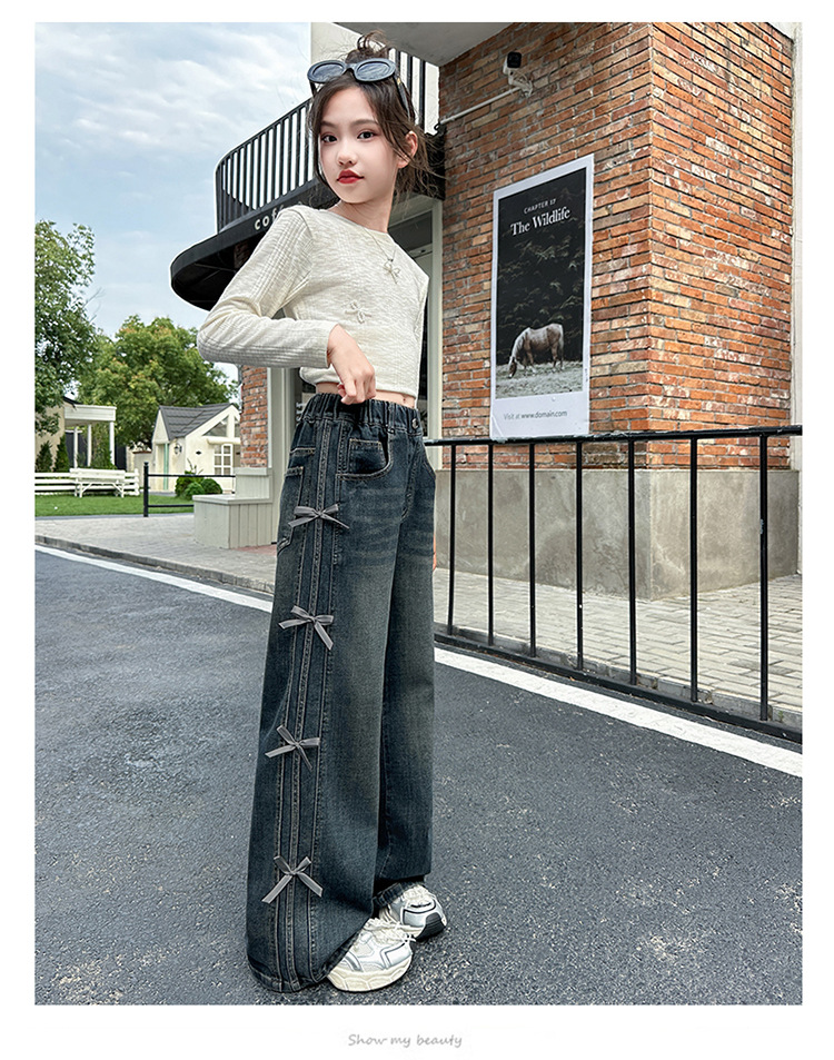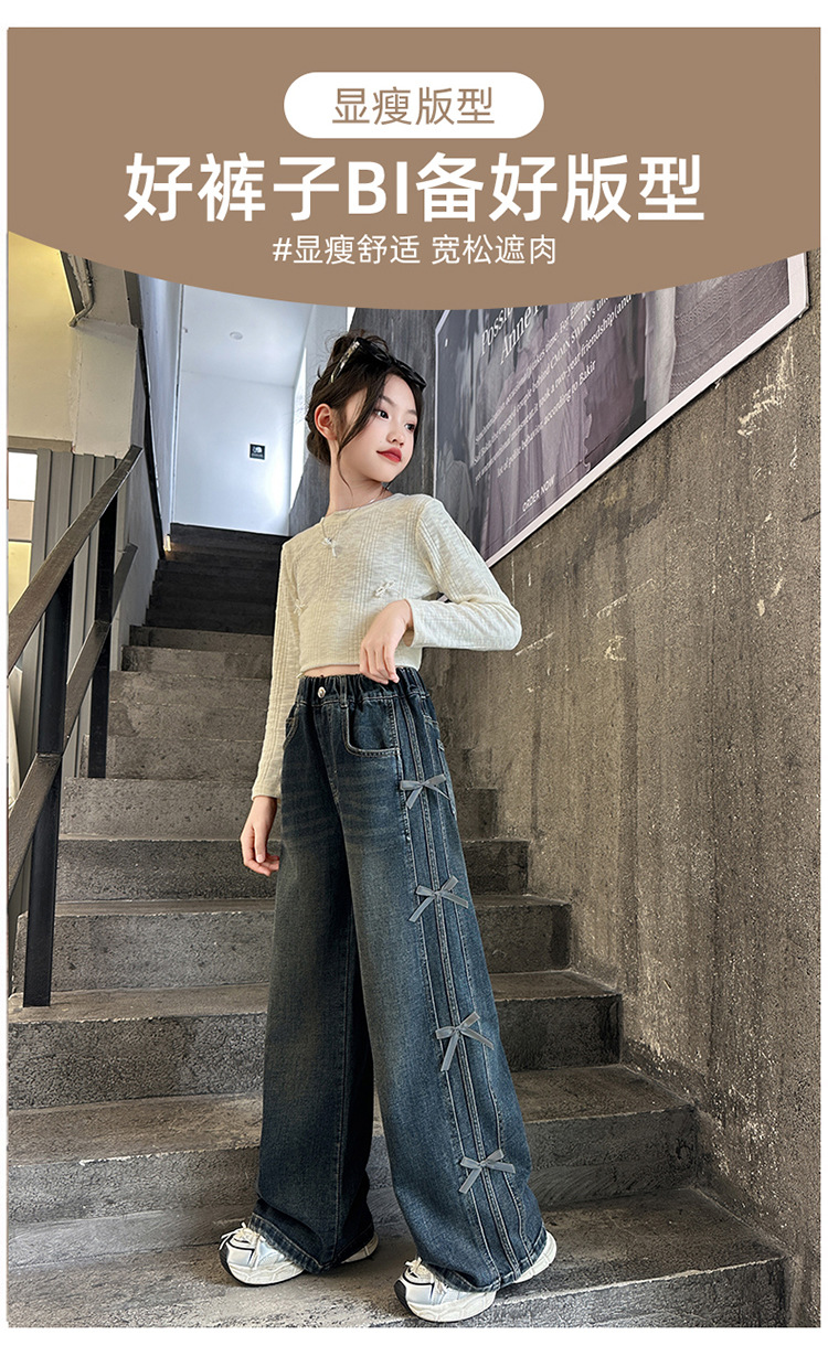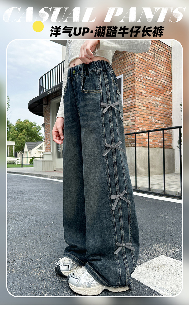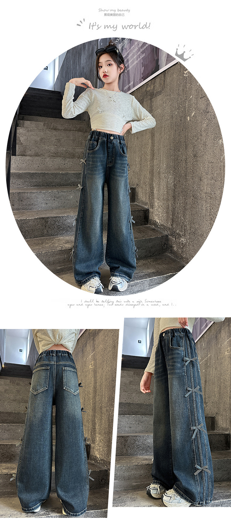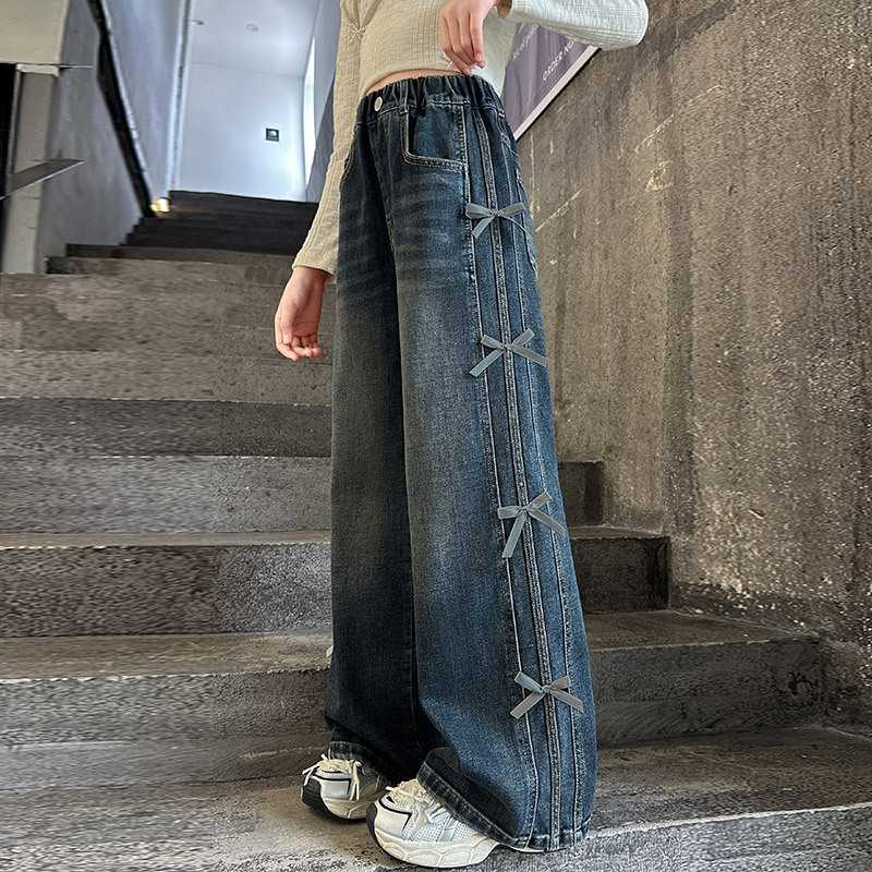 여아 청바지, 봄, 가을 스타일, 중대형 아동용 스트레이트 와이드 팬츠, 아동용 루즈 패션 팬츠, 바지스토어 가기