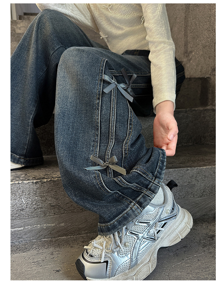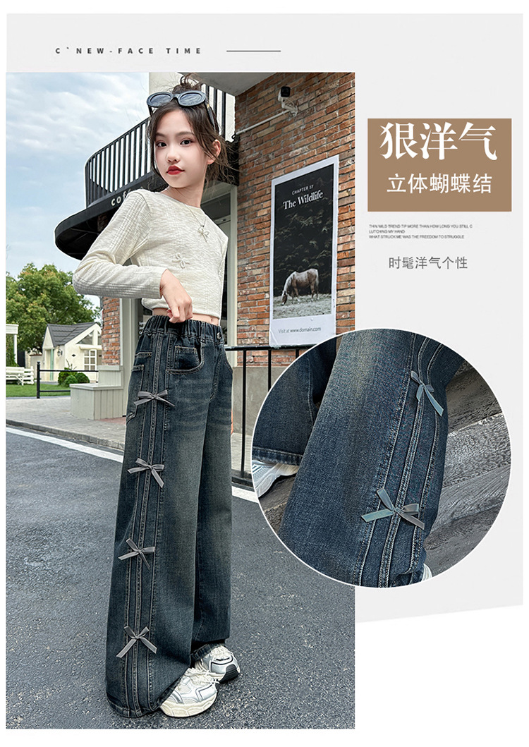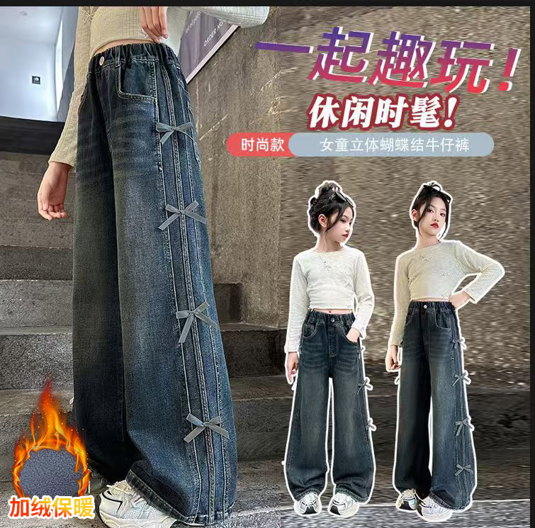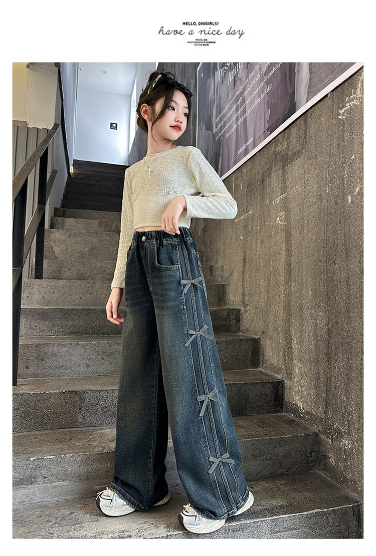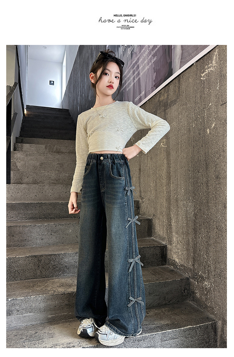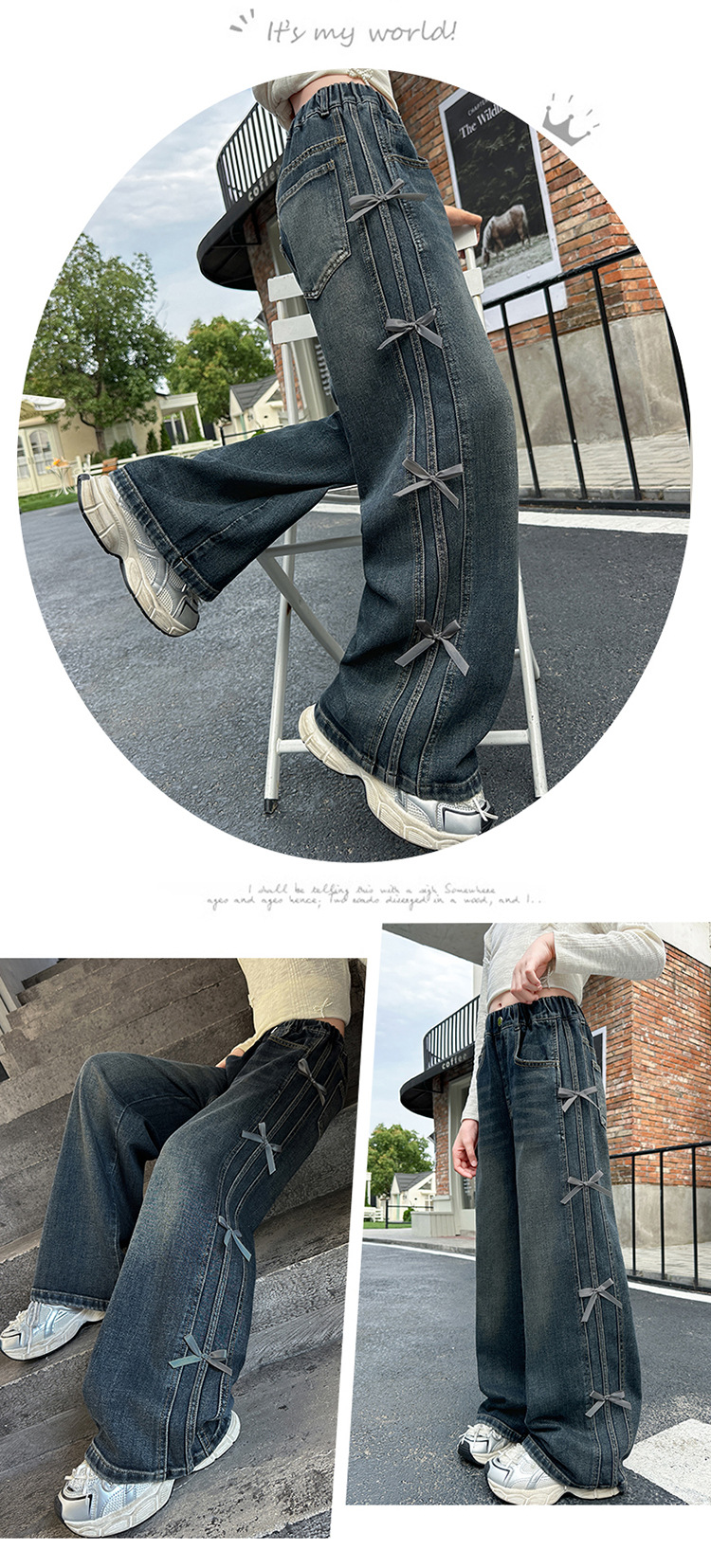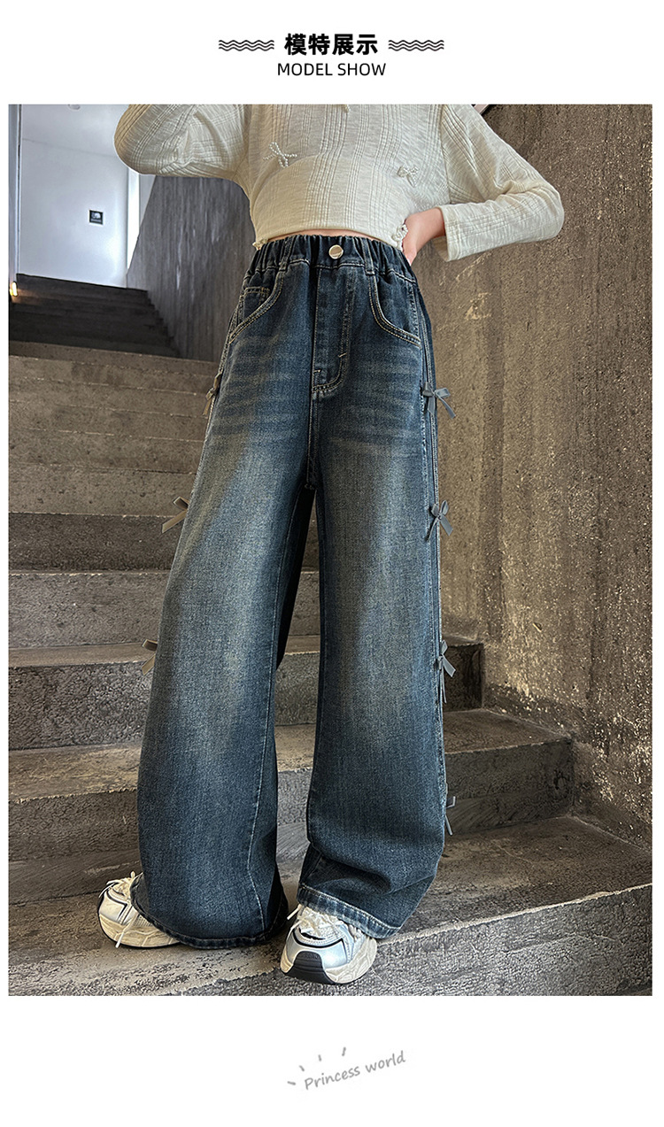 여아 청바지, 봄, 가을 스타일, 중대형 아동용 스트레이트 와이드 팬츠, 아동용 루즈 패션 팬츠, 바지스토어 가기