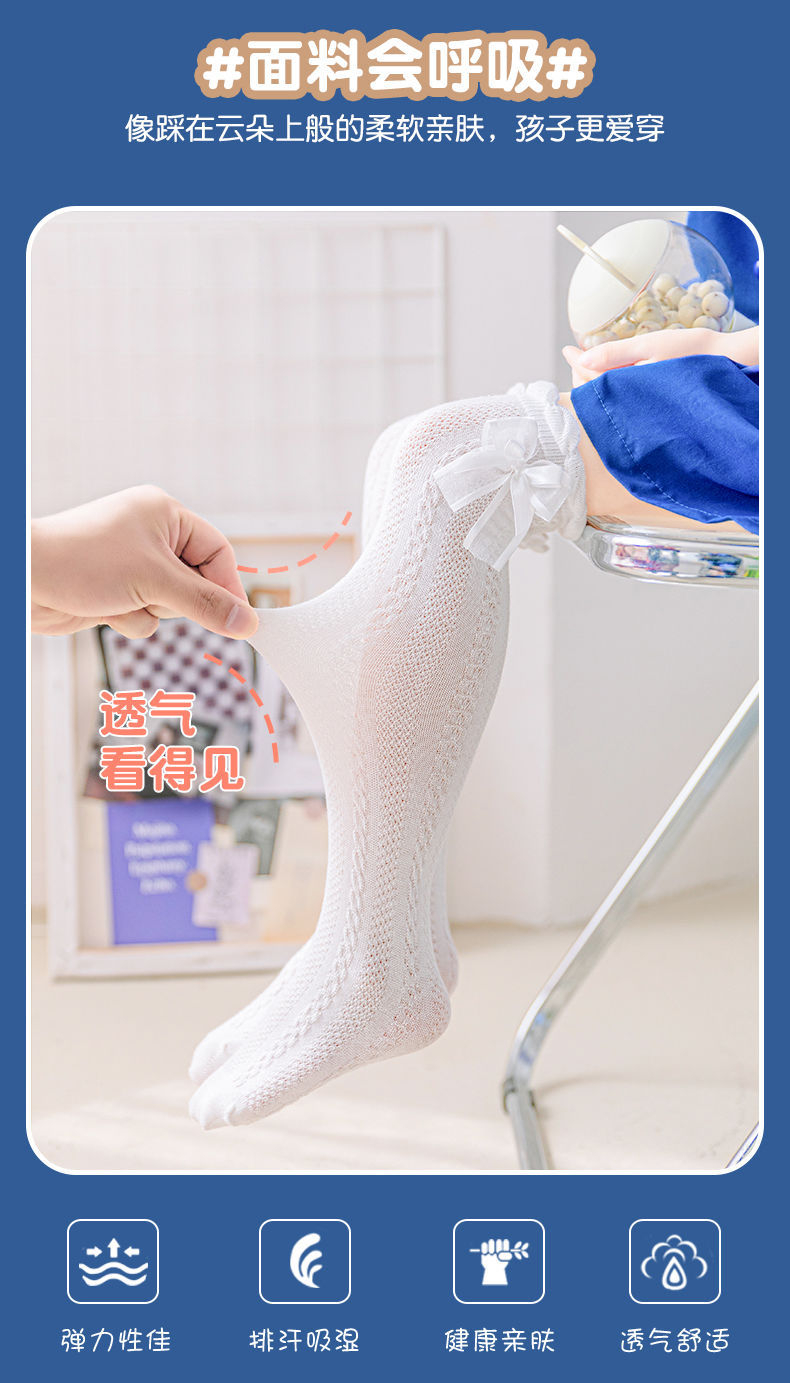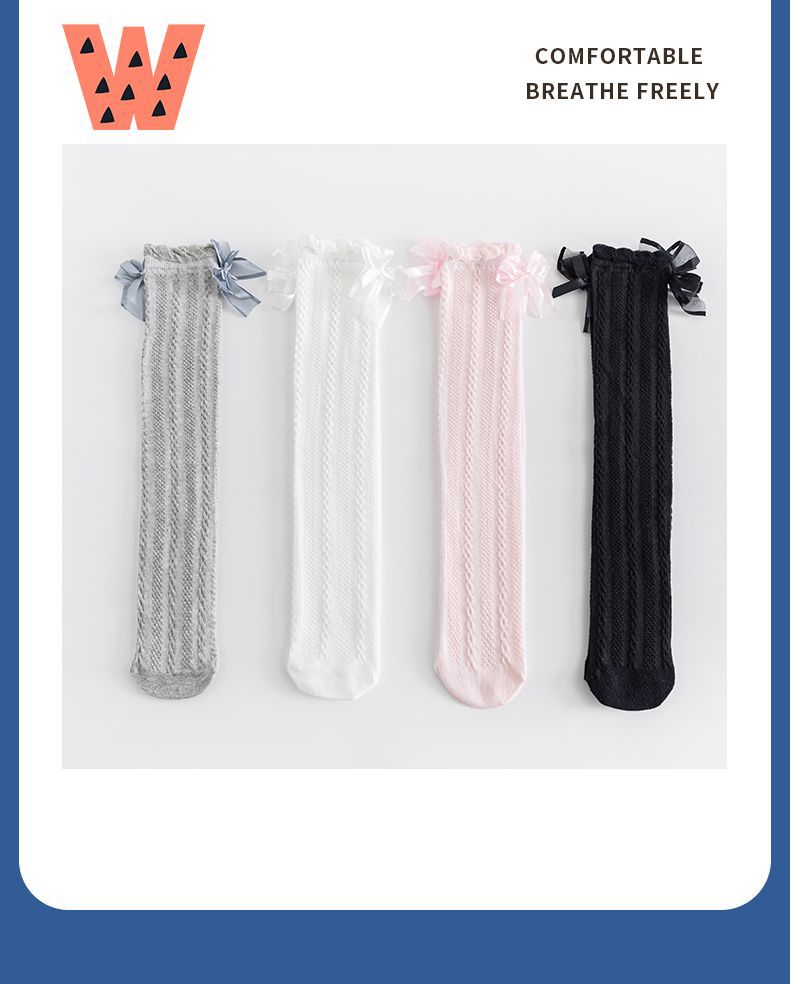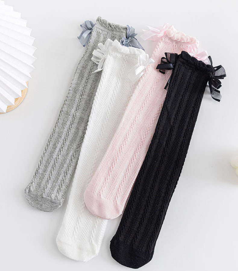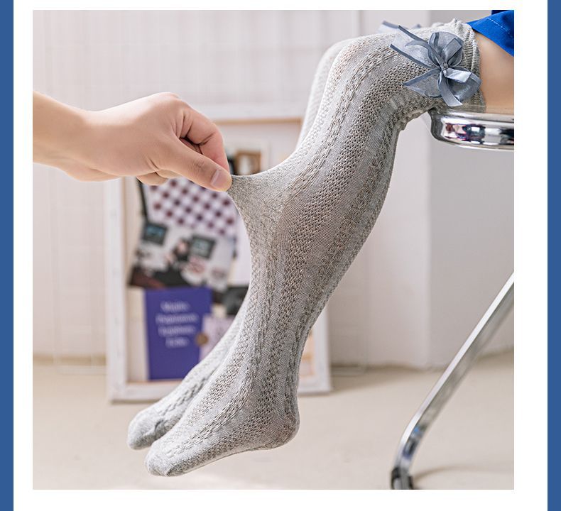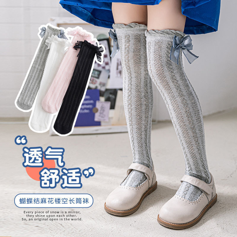 여자 양말 얇은 여름 스타킹 아기 하이 보우 소녀 공주 어린이 로리타 무릎 양말