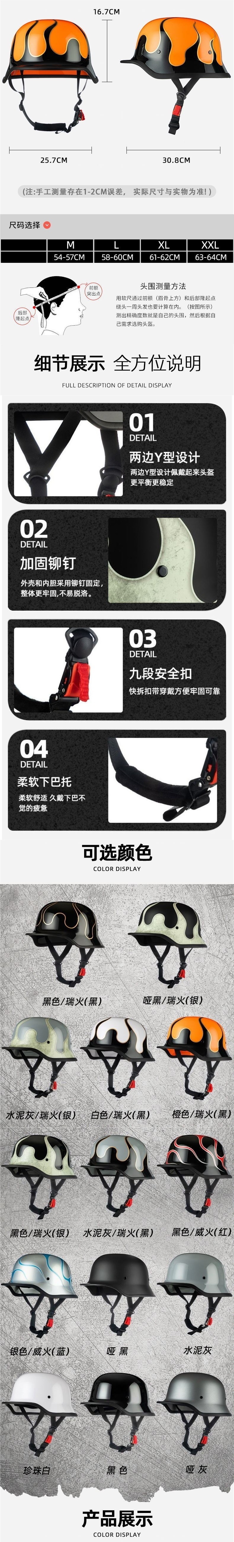 Jili 독일 스타일 헬멧 군인 헬멧 오토바이 할리 복고풍 오토바이 여름 반 헬멧 안전 경량 패션 도매