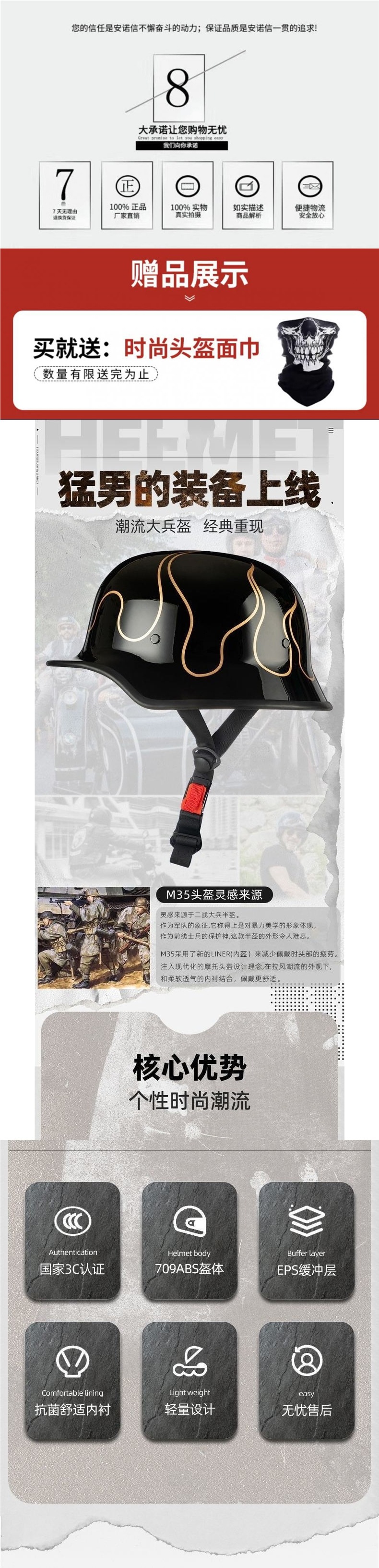 Jili 독일 스타일 헬멧 군인 헬멧 오토바이 할리 복고풍 오토바이 여름 반 헬멧 안전 경량 패션 도매스토어 가기