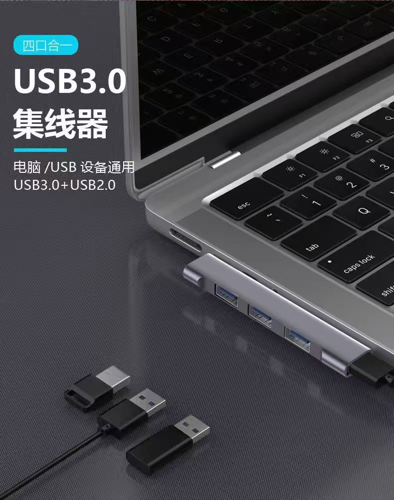 USB 확장기 3.0 세트 분배기 외부 허브 노트북 유형 도킹 스테이션 U 디스크 PD 전원 공급 장치 60W 측면 벤딩