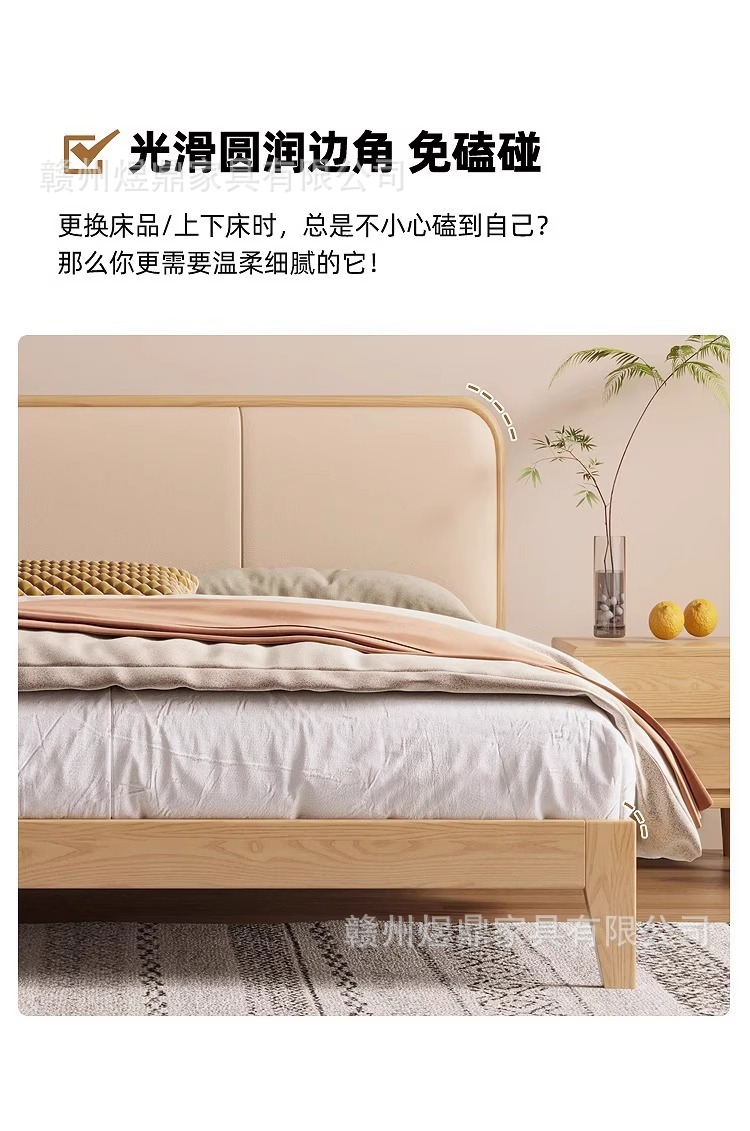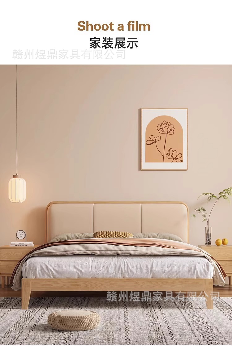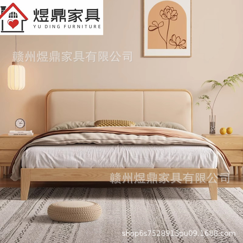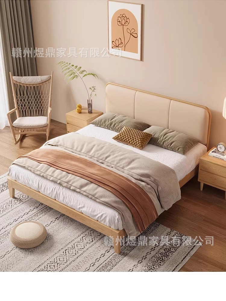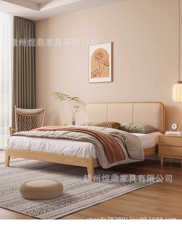 북유럽 단단한 나무 침대 애쉬 모던 심플 1.5m 싱글 마스터 침실 작은 아파트 1.8m 소프트 등받이 더블 침대