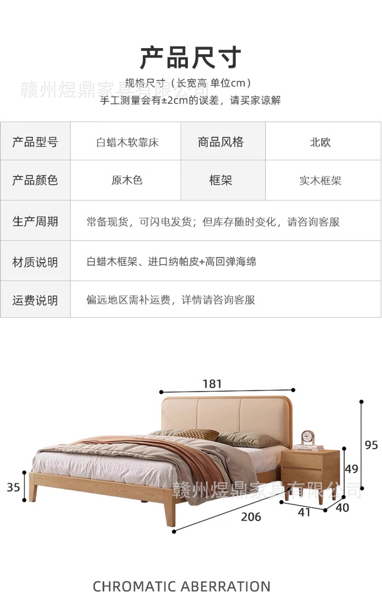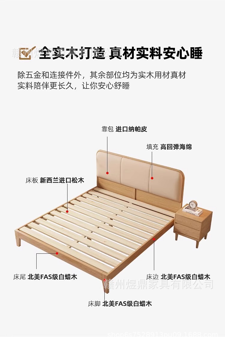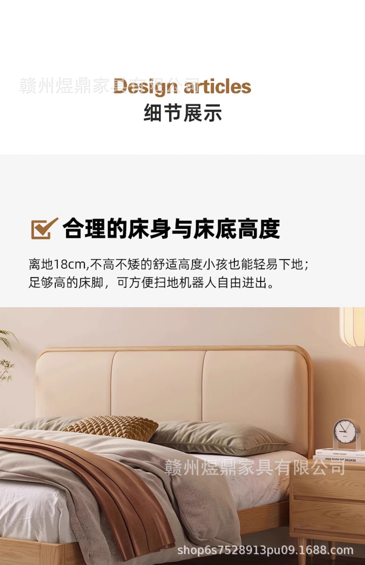 북유럽 단단한 나무 침대 애쉬 모던 심플 1.5m 싱글 마스터 침실 작은 아파트 1.8m 소프트 등받이 더블 침대