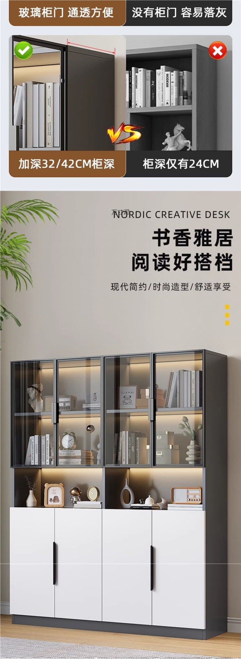 유리 핸드메이드 디스플레이 캐비닛이 있는 2025 책장, 가벼운 고급 사무실 보관 캐비닛, 디스플레이 보관 캐비닛, 바닥에서 천장까지 이어지는 책장스토어 가기