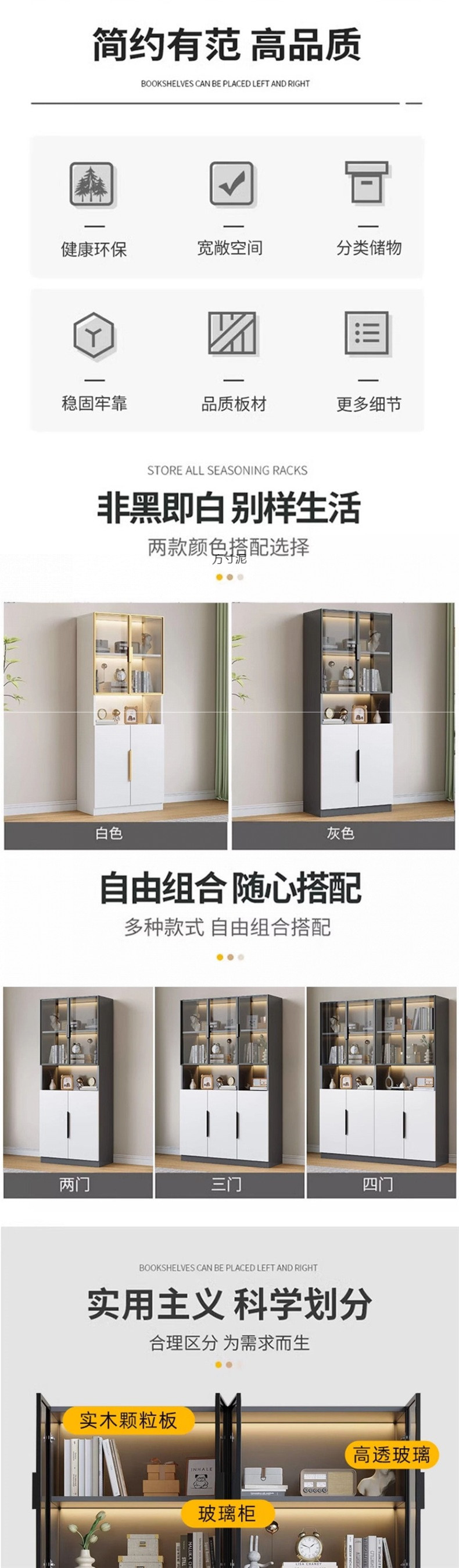 유리 핸드메이드 디스플레이 캐비닛이 있는 2025 책장, 가벼운 고급 사무실 보관 캐비닛, 디스플레이 보관 캐비닛, 바닥에서 천장까지 이어지는 책장