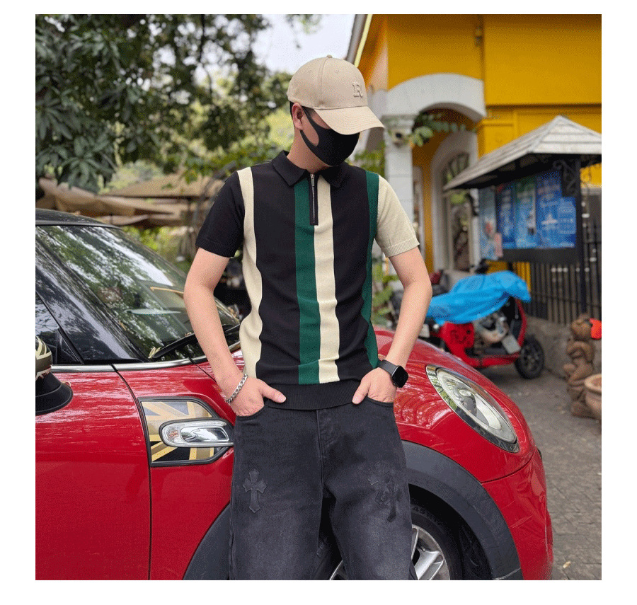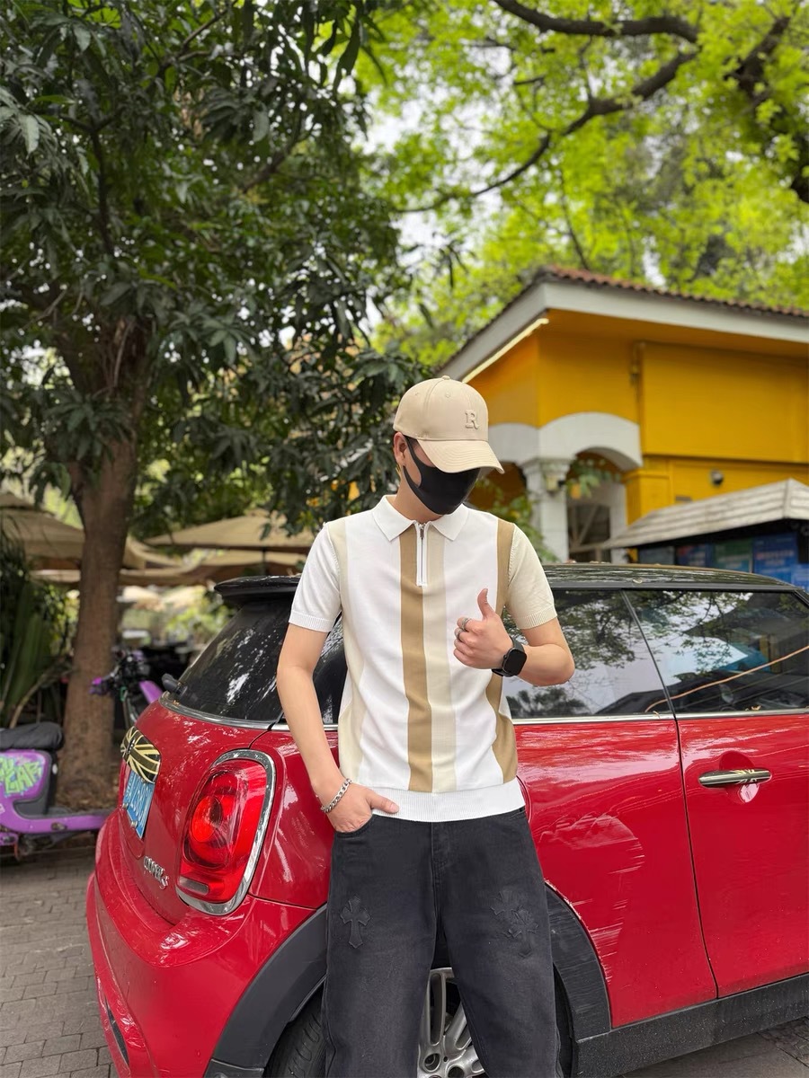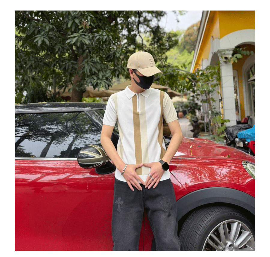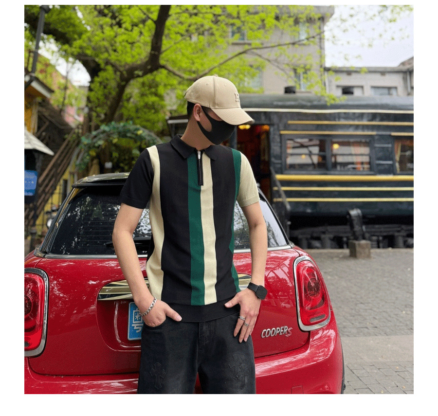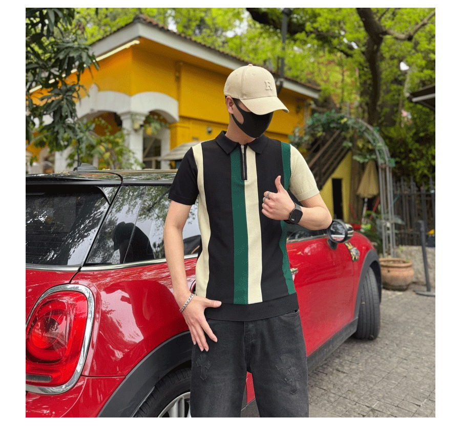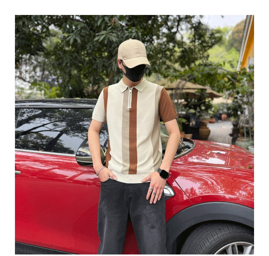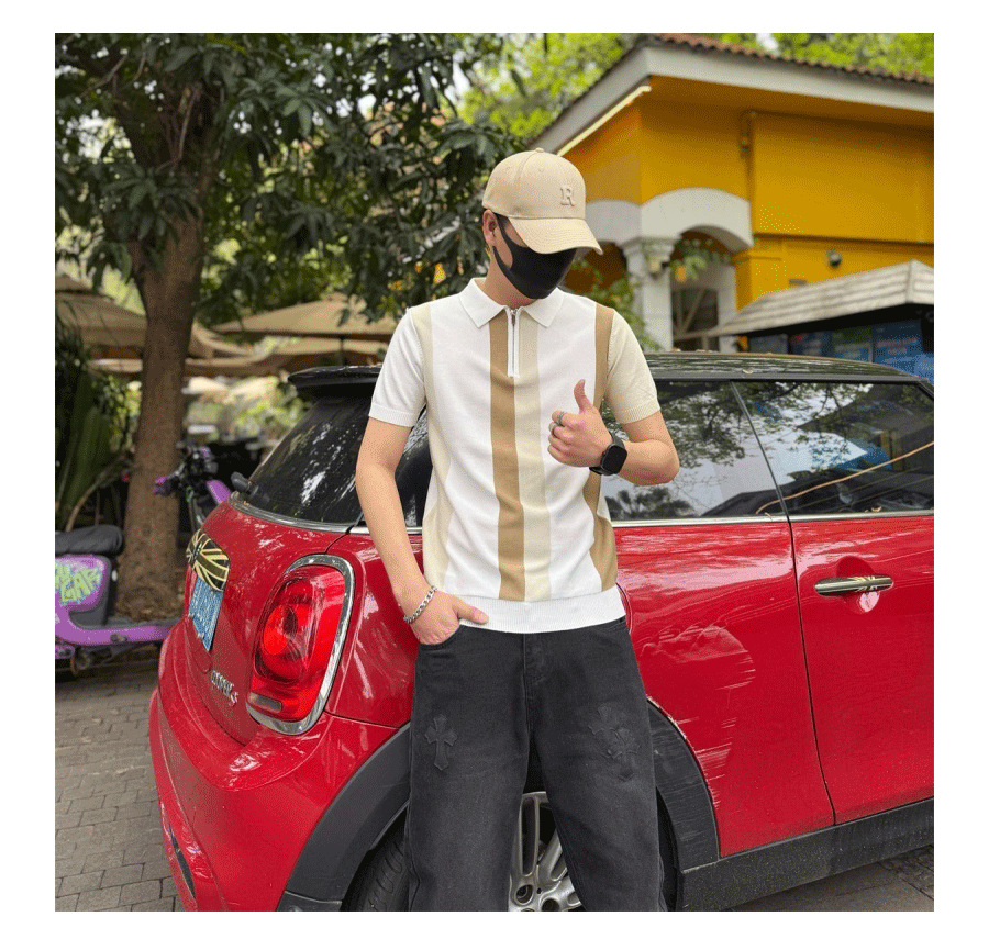 하프 지퍼 스타일 아이스 실크 얇은 반팔 스웨터 남성 여름 시원한 스웨터 티셔츠 남성 아우터 탑