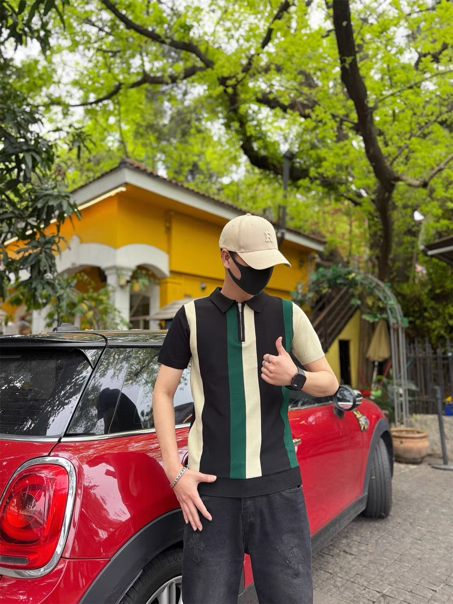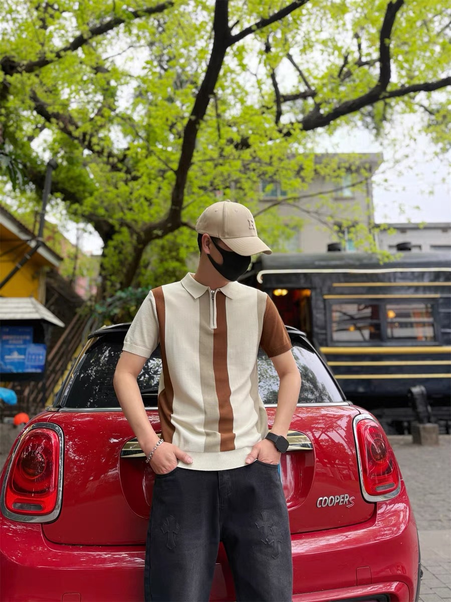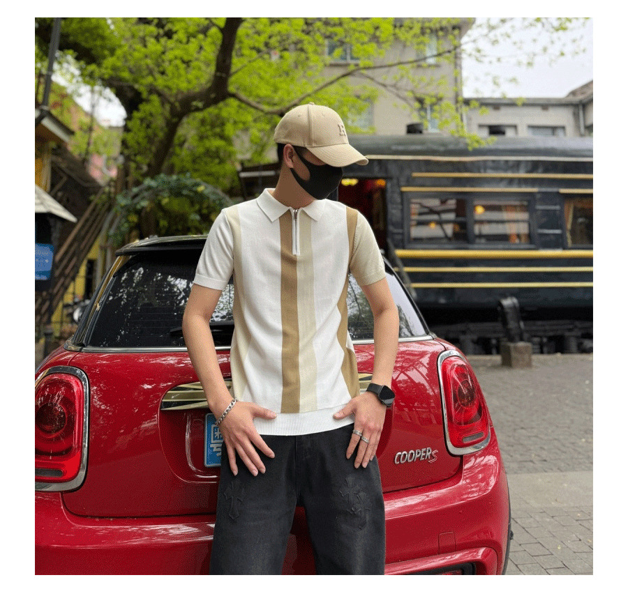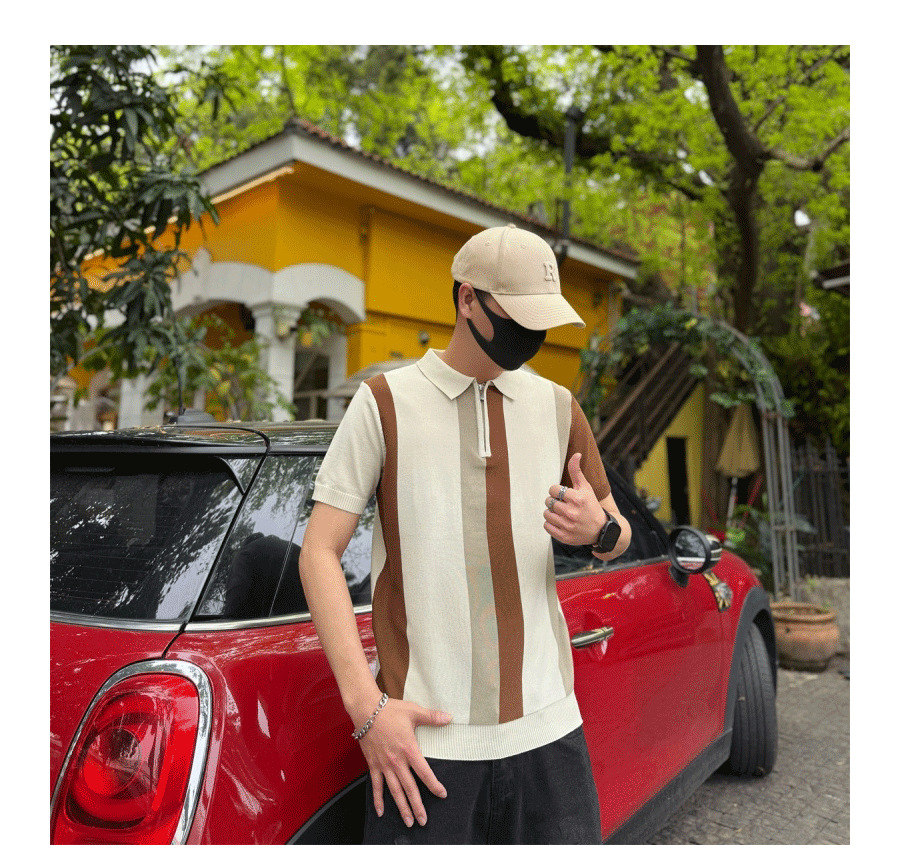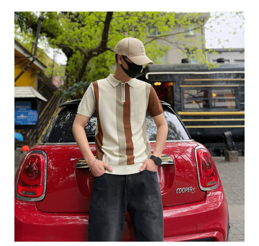 하프 지퍼 스타일 아이스 실크 얇은 반팔 스웨터 남성 여름 시원한 스웨터 티셔츠 남성 아우터 탑스토어 가기