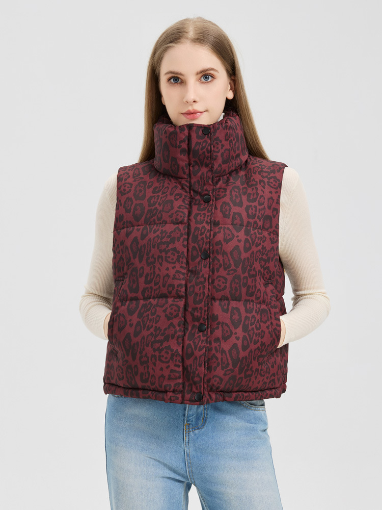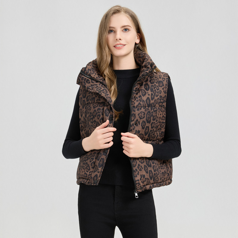 아마존 국경 간 대외 무역 유럽과 미국 여성 도매 2025 가을, 겨울 새로운 유럽과 미국 스타일의 표범 인쇄 다운 코튼 조끼