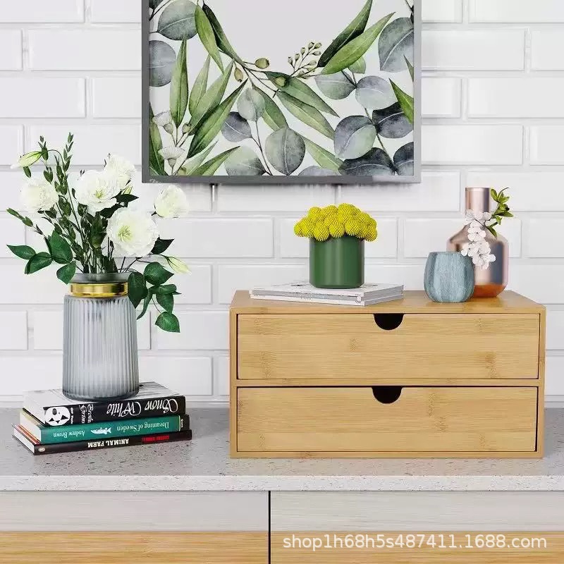 새로운 대나무 데스크탑 서랍 스타일 스토리지 박스 화장품 화장대 침대 옆 테이블 책상 간단한 다층 스토리지 랙