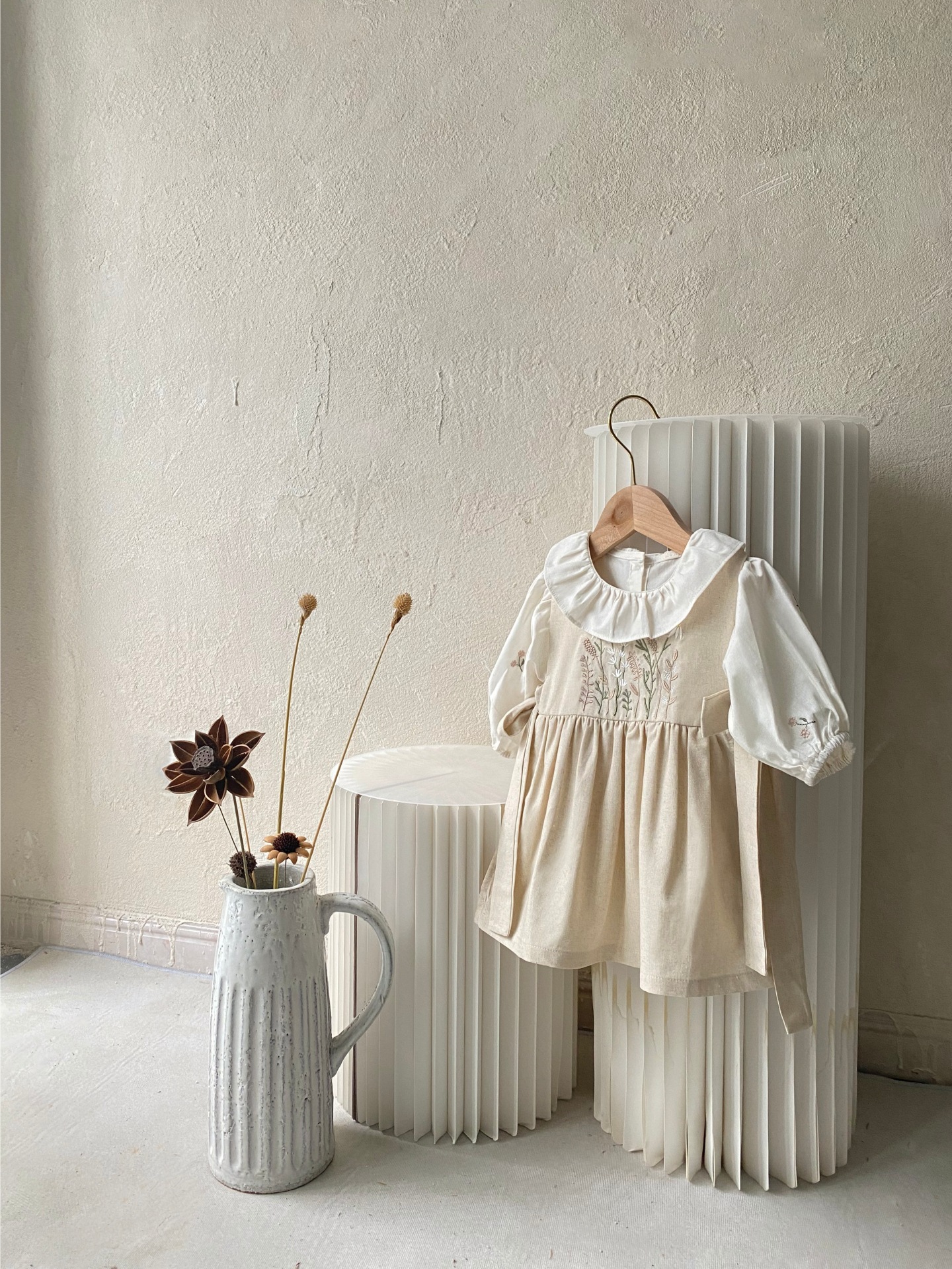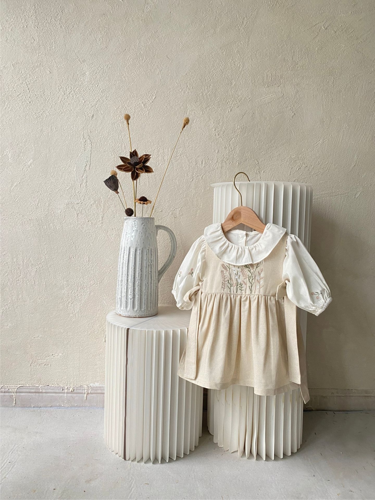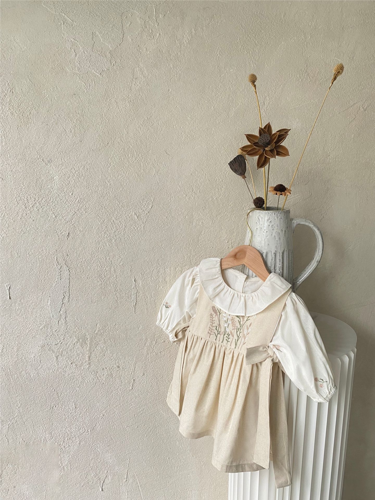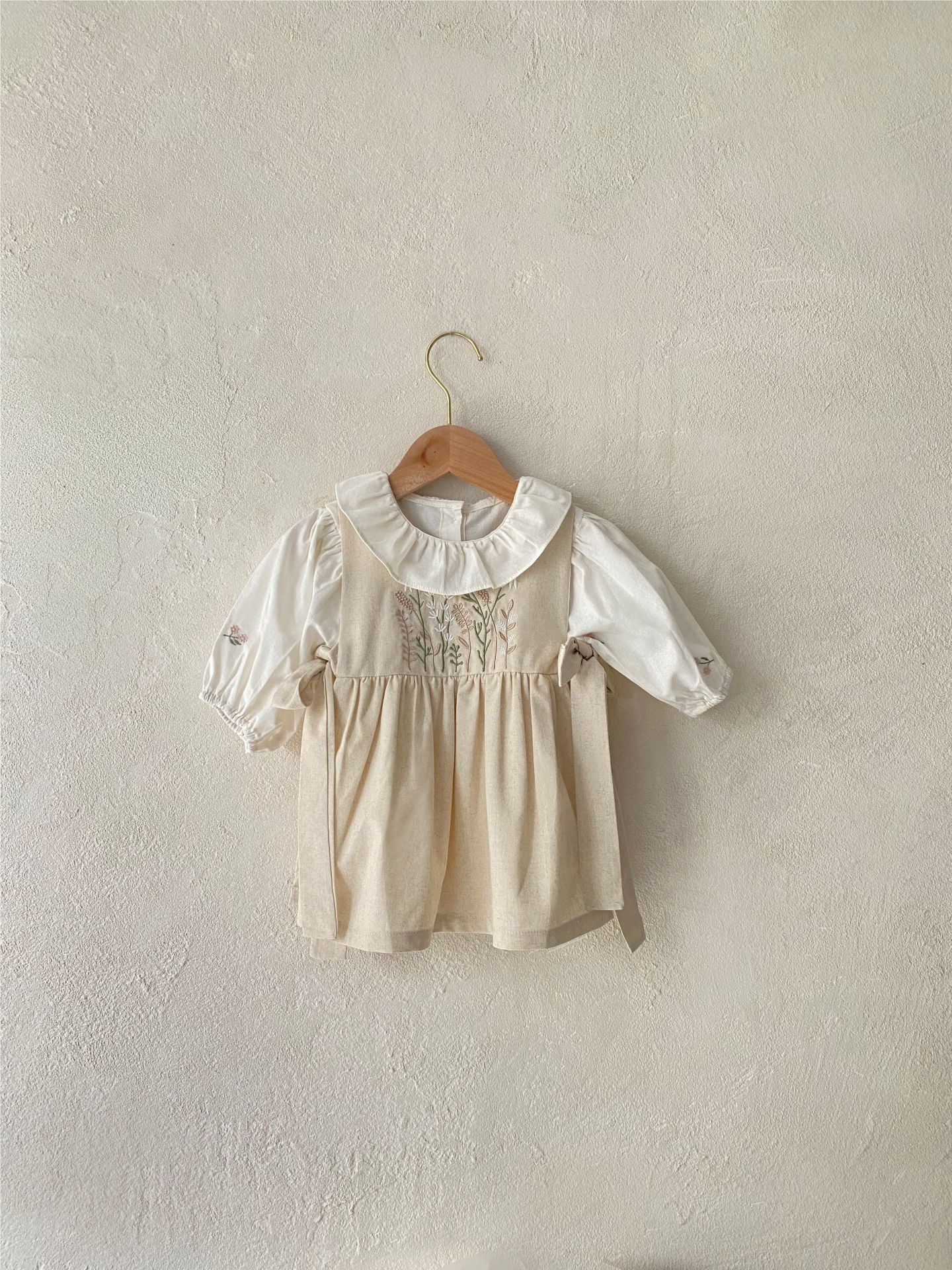 여자 아기 롱 스커트 소녀 봄과 여름 꽃과 잔디 자수 나비 스트랩 앞치마 스타일 민소매 서스펜더 드레스 조끼 드레스스토어 가기