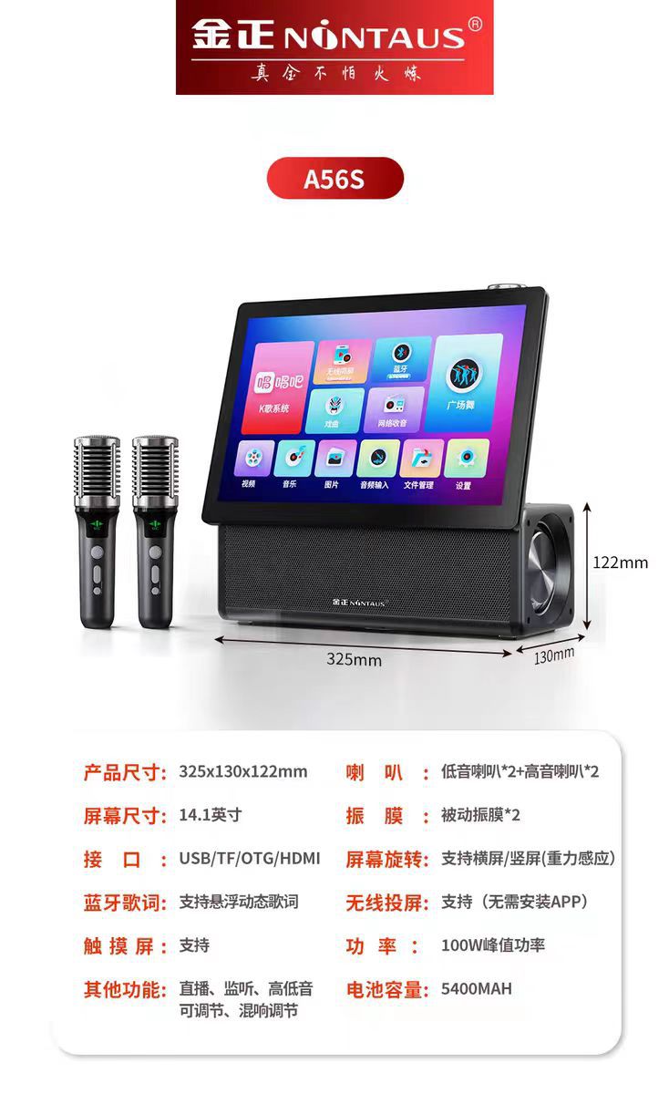 Jinzheng A56pro 네트워크 연결 휴대용 15inch 비디오 오디오는 WIFI 무선 휴대폰 동시 화면 지원하며 화면 회전 가능스토어 가기