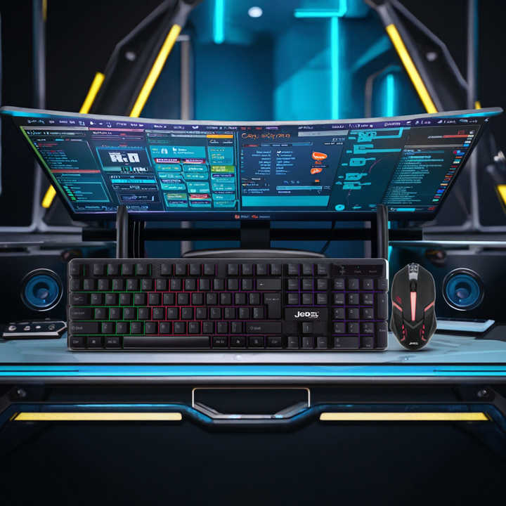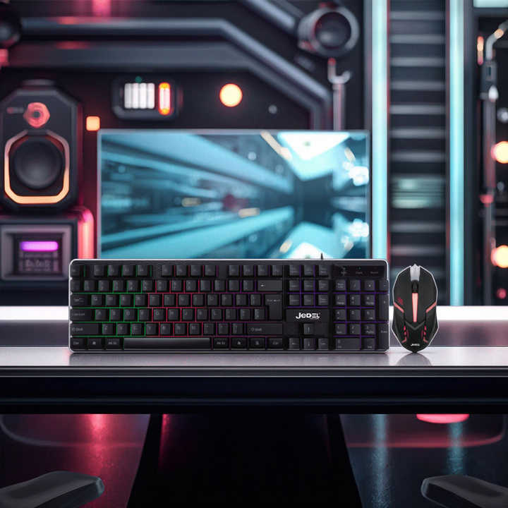 104키 유선 USB RGB 백라이트 키보드 및 마우스 세트 초박형 기계적 느낌 게임 콤보스토어 가기