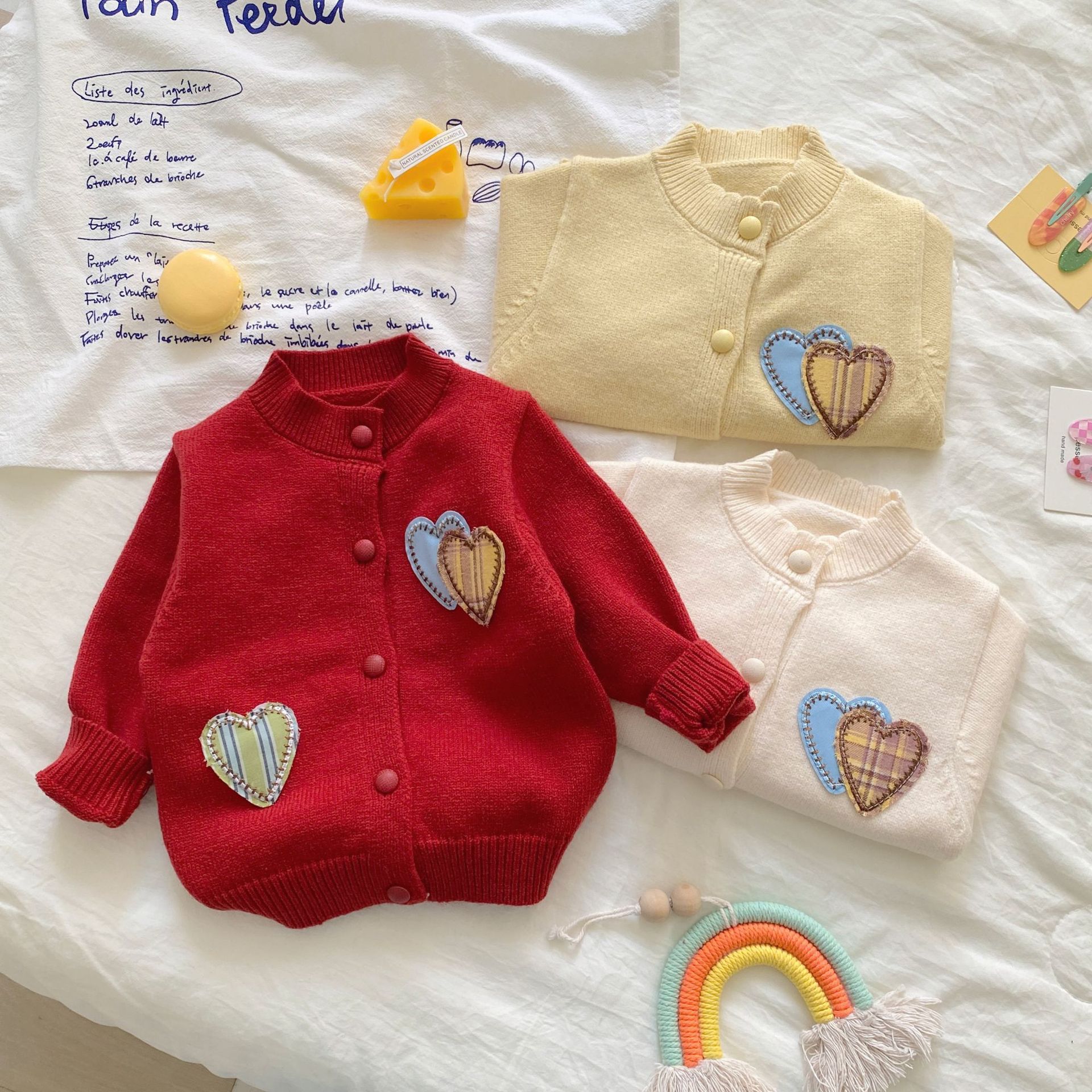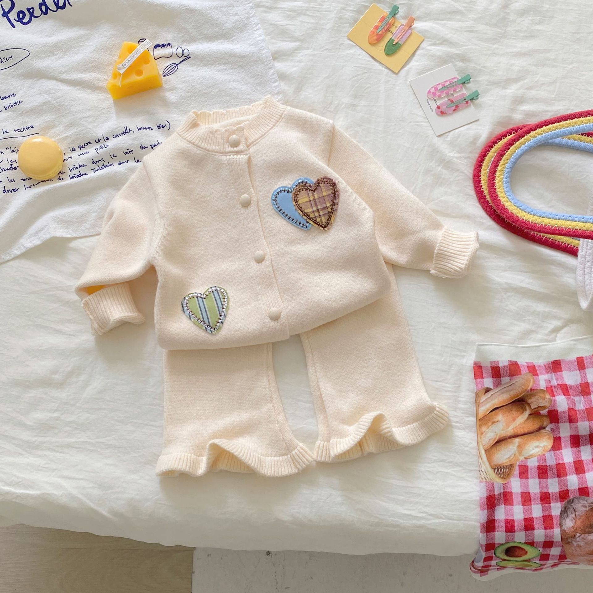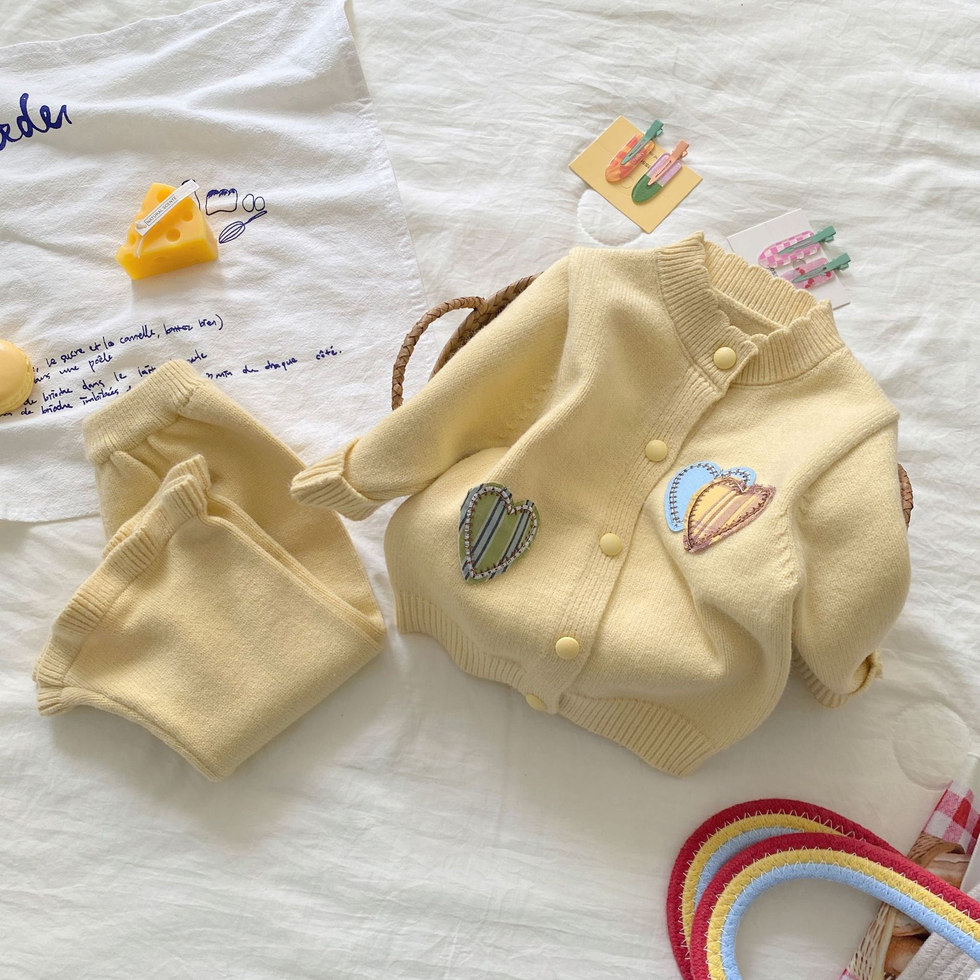 여자 정장 가을, 겨울 2025 새로운 스웨터 투피스 세트 아기 소녀 사랑 카디건 바지 니트 옷