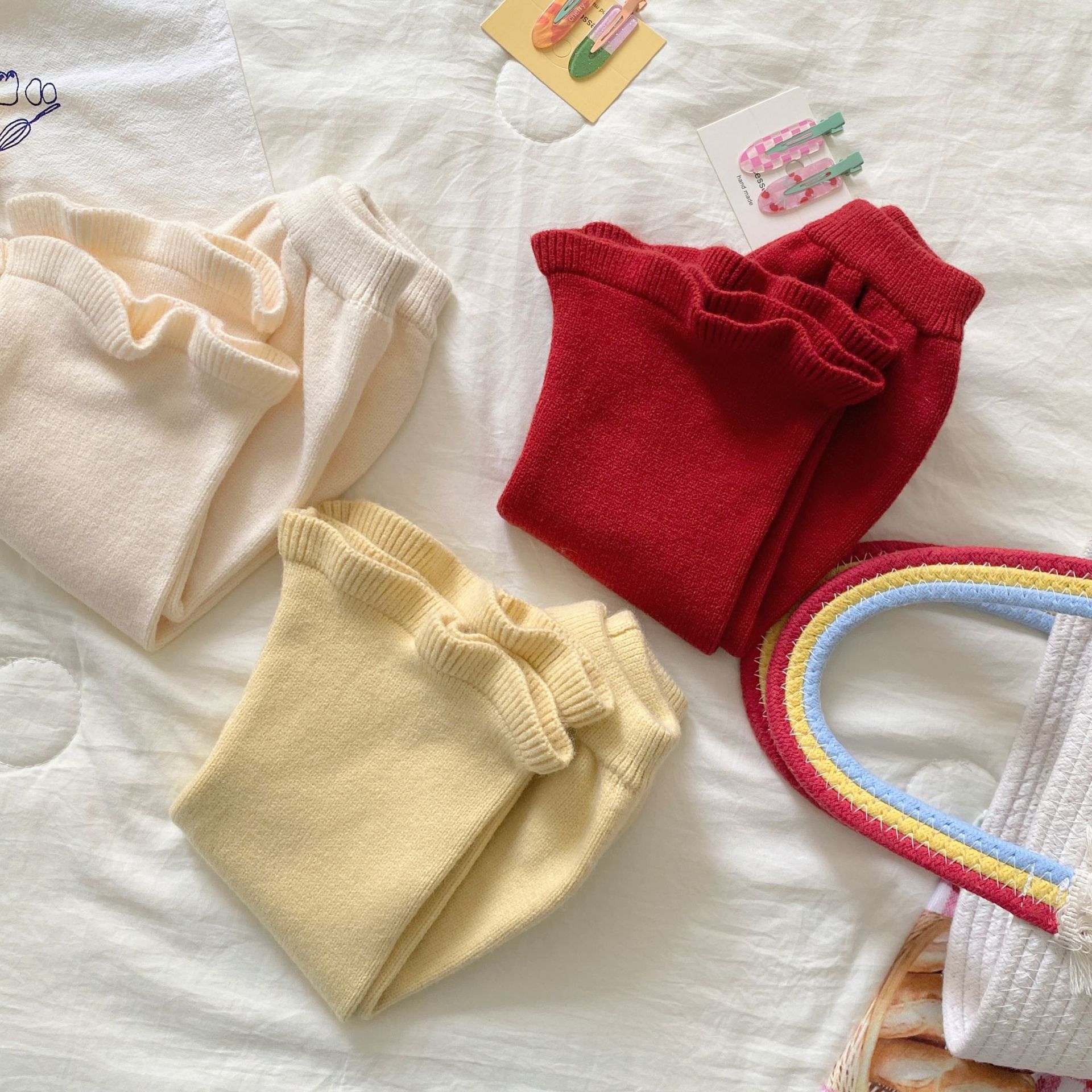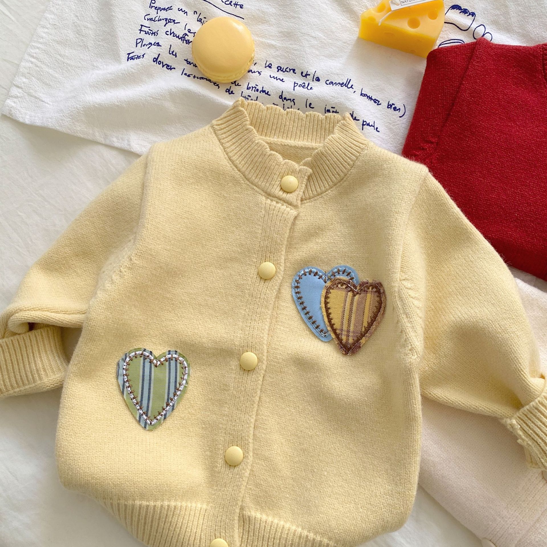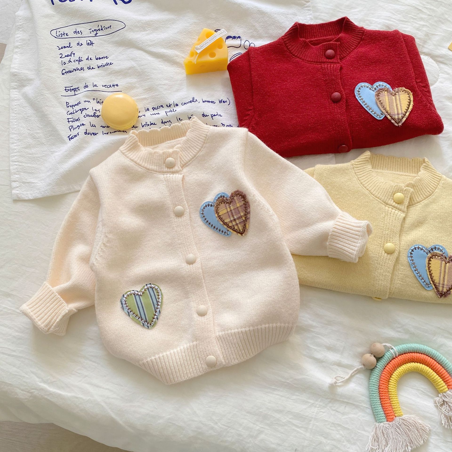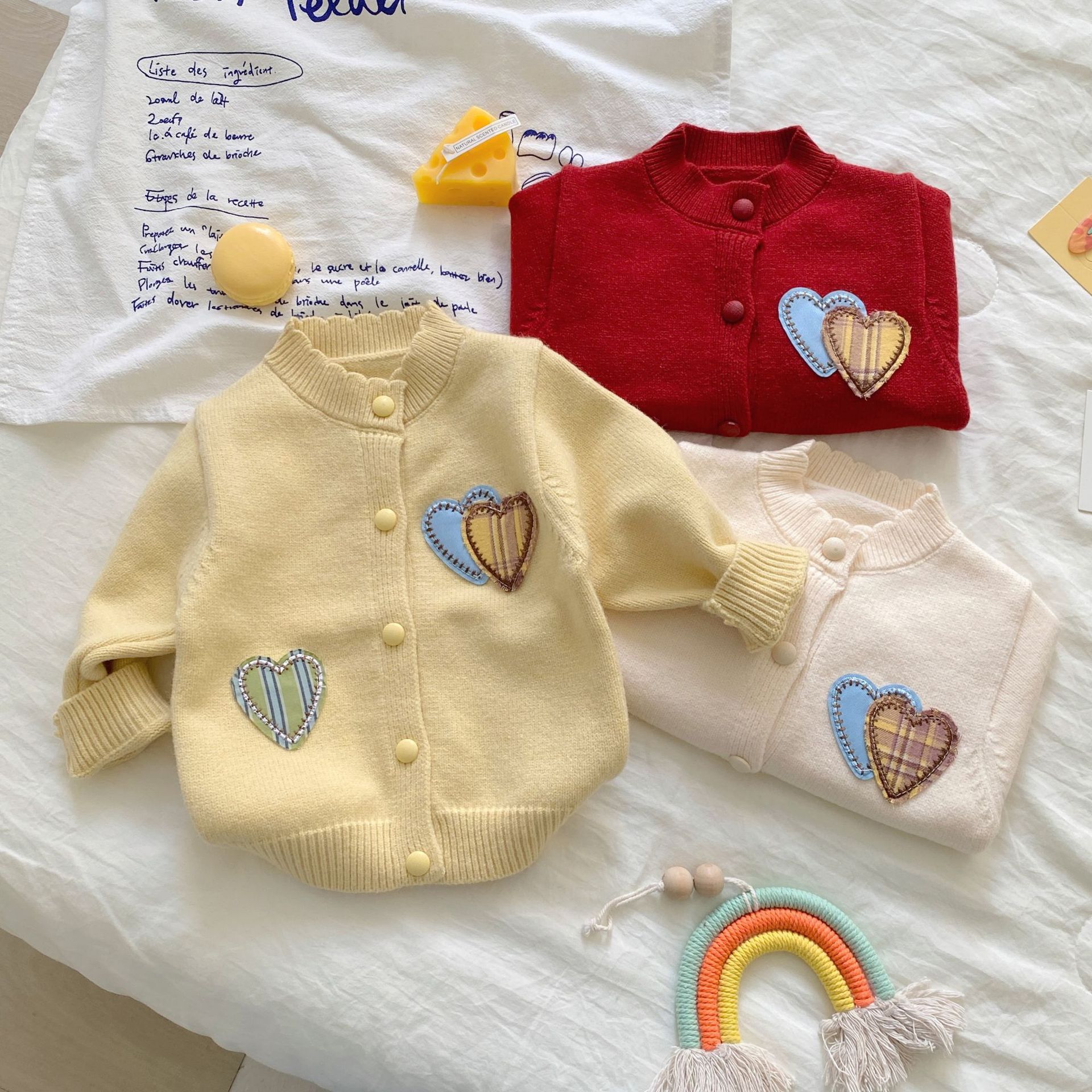 여자 정장 가을, 겨울 2025 새로운 스웨터 투피스 세트 아기 소녀 사랑 카디건 바지 니트 옷
