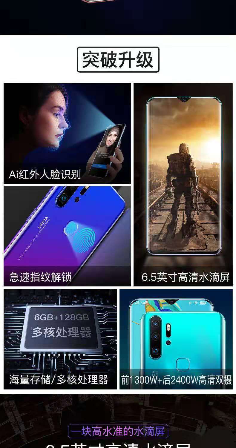 소스 제조업체 6.5inch 워터 드롭 대형 스크린 전체 네트워크 듀얼 카드 게임 저렴한 안드로이드 스마트폰