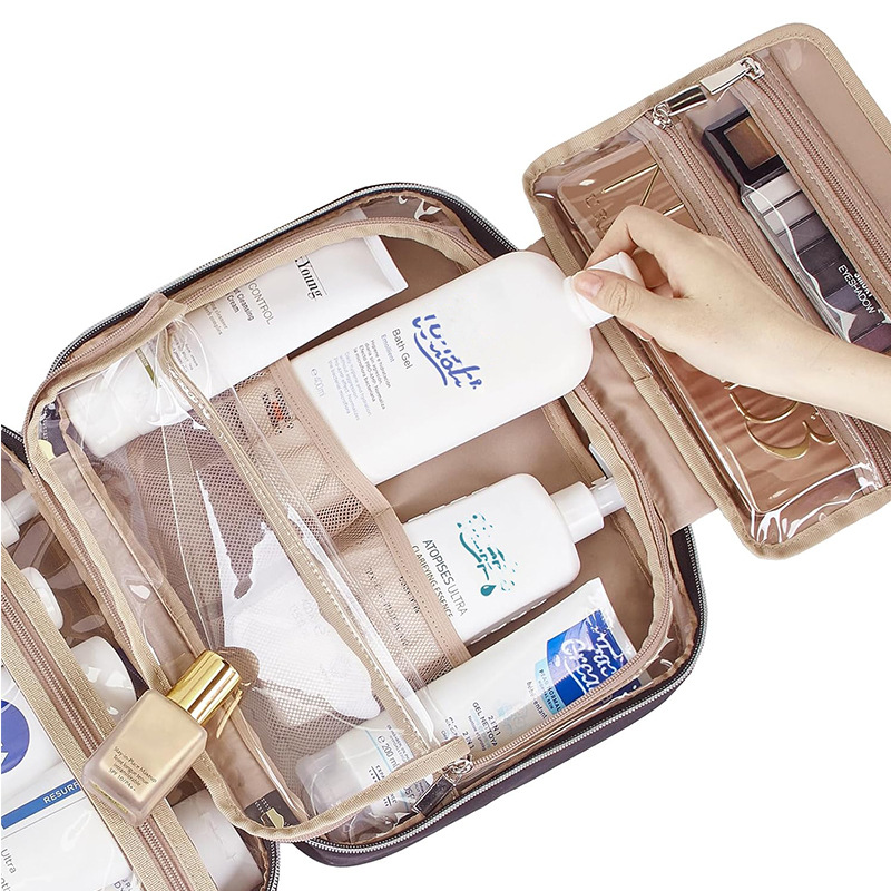 여행용 걸이식 세면도구 가방, 다층 분리형 방수 옥스포드 천 보관 가방, 휴대용 출장 화장품 가방, 세면도구 가방
