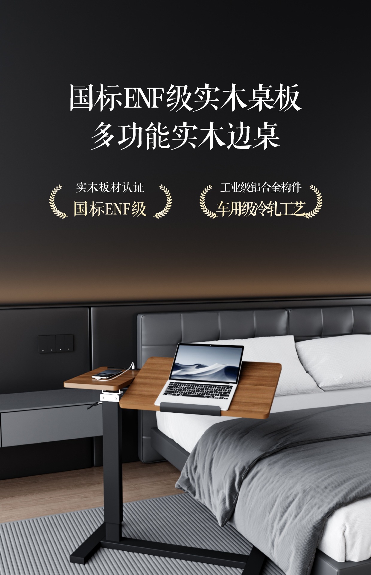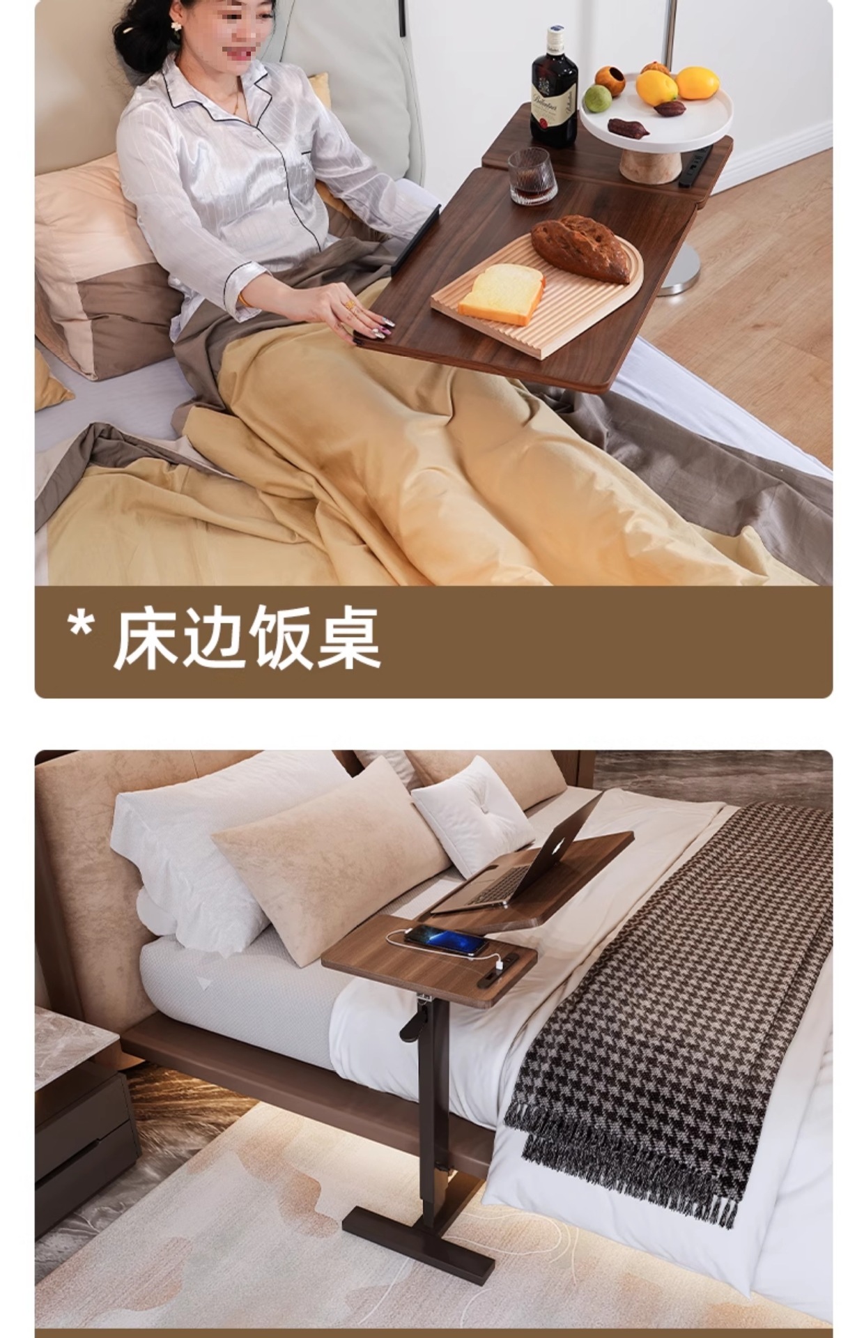 원목 침대 옆 테이블 침대 책상 이동식 노트북 테이블 리프팅 접이식 학습 테이블 소파 jjω