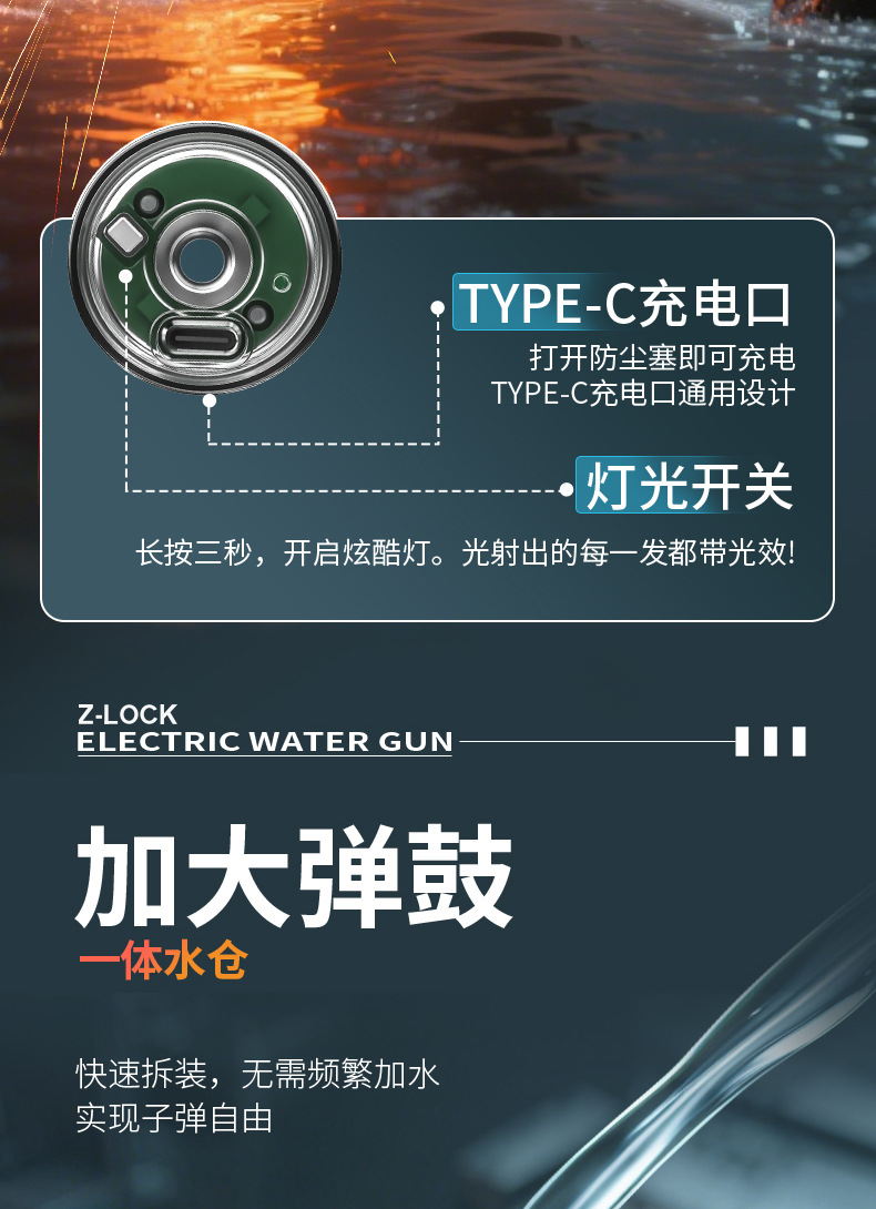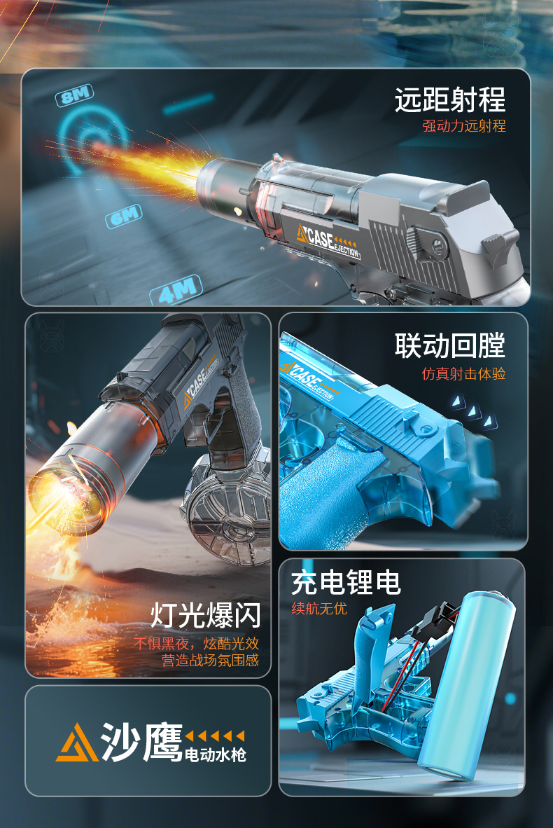 Desert Eagle 2세대 탈착식 화염 버전 연결 전기 물총 연속 물총 여름 물놀이 장난감