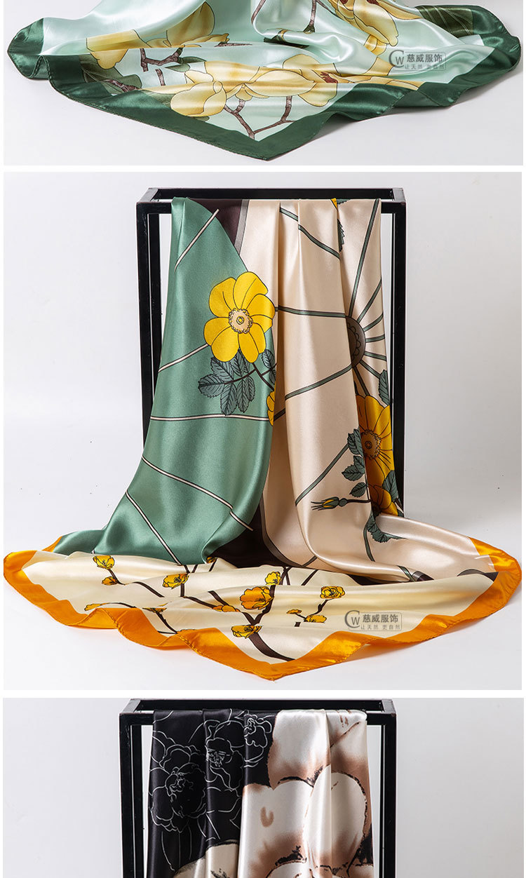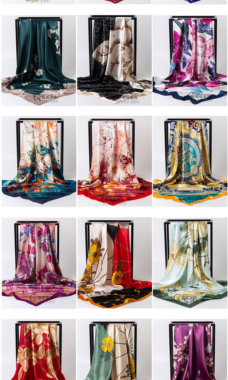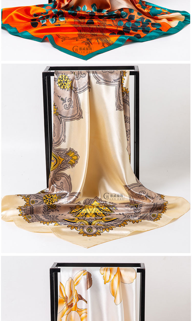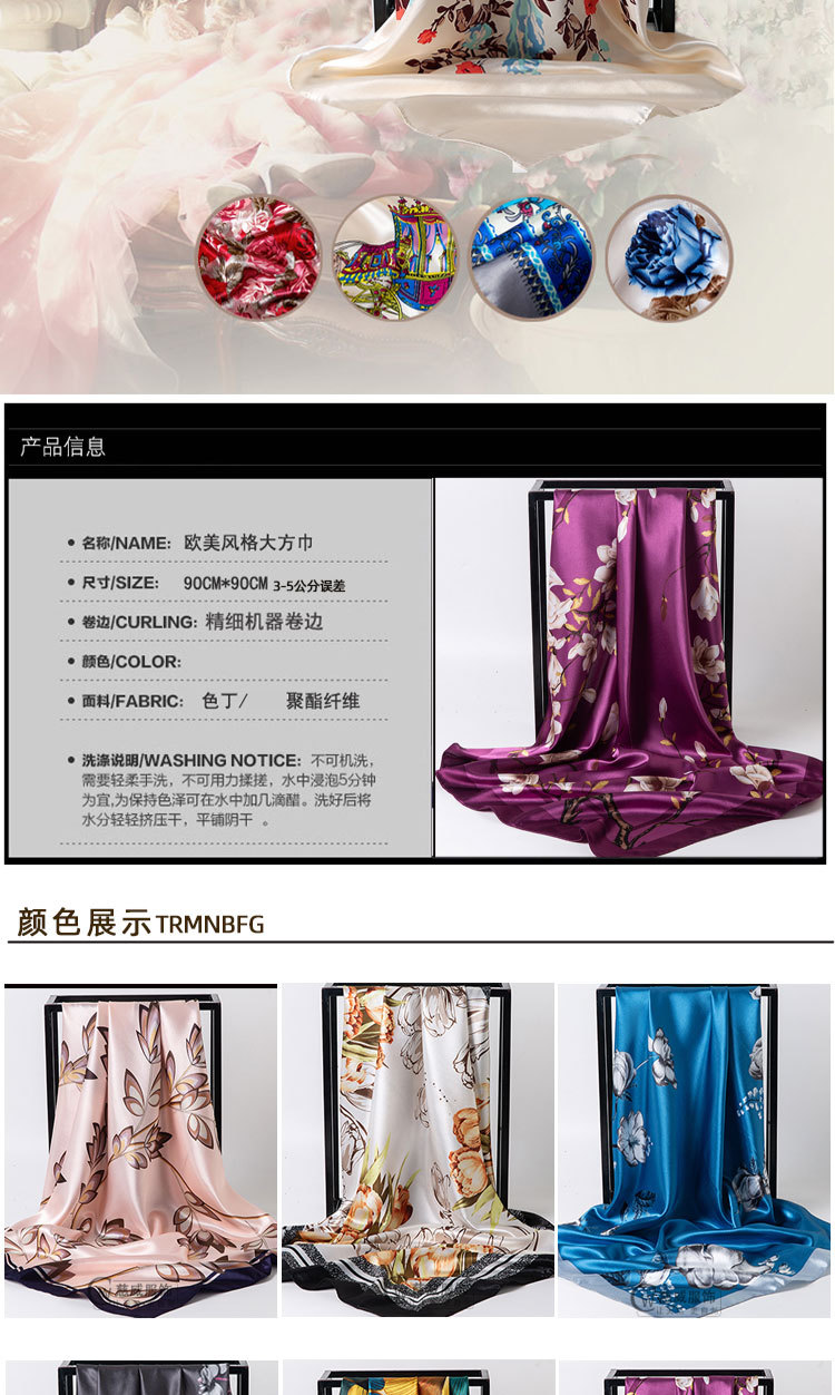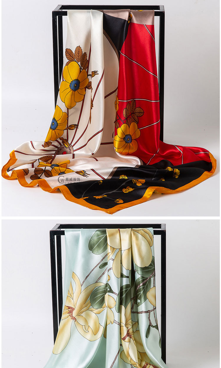 직접 판매 해외 선물용 중국풍 90*90cm 대형 스카프 실크 느낌 스카프 숄 봄 가을 신상품