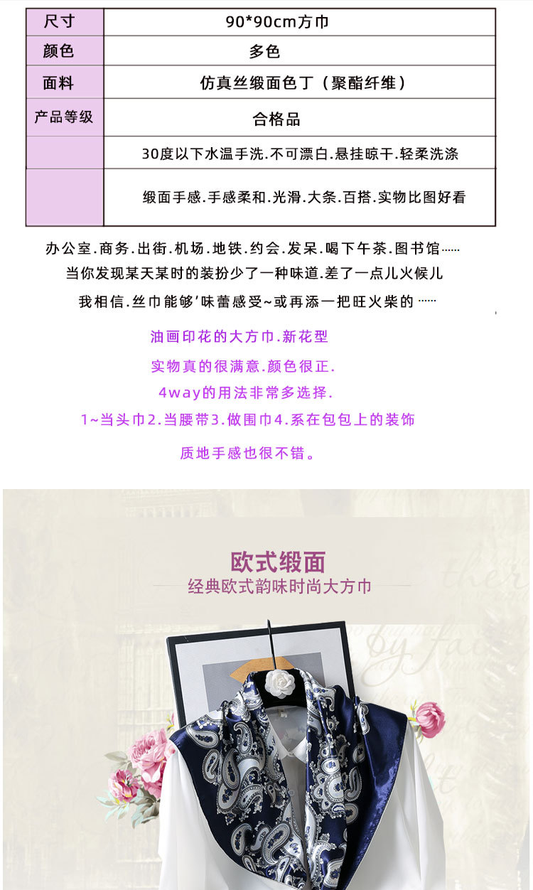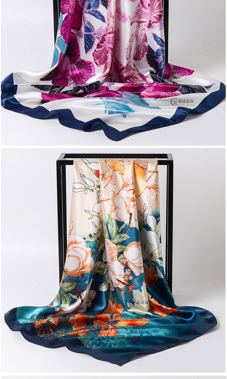 직접 판매 해외 선물용 중국풍 90*90cm 대형 스카프 실크 느낌 스카프 숄 봄 가을 신상품스토어 가기