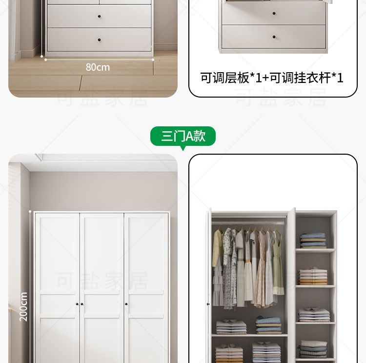 • [두꺼워지고 깊어짐] 양문형 및 이중 서랍 [단일 걸이 옷] 길이 0.8 + 상단 캐비닛