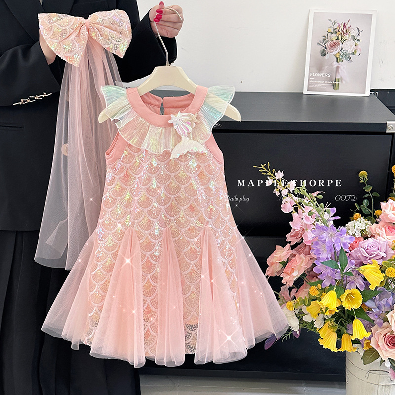 여아 여름 인어공주 드레스 2026 신상 어린 소녀 아기 반짝이 드레스 어린이 패셔너블 공주 드레스스토어 가기