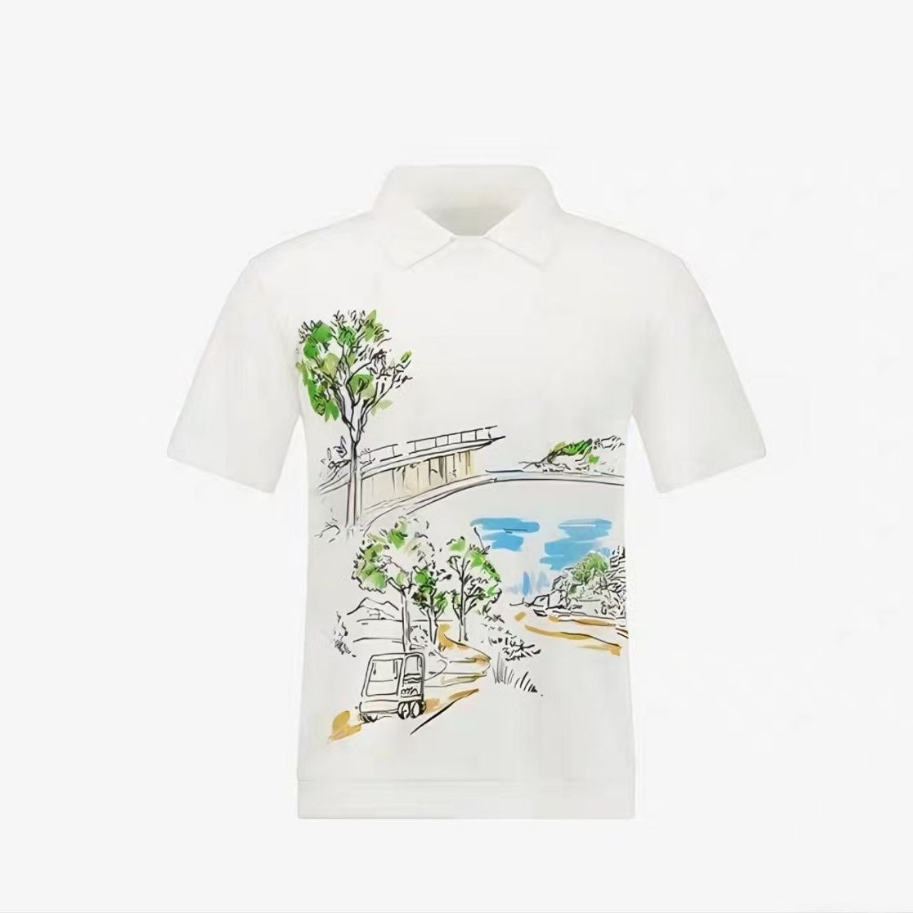 25 여름 신작 골프웨어 남성용 얇고 가볍고 통기성이 뛰어나며 속건성 프린트 라펠 반소매스토어 가기