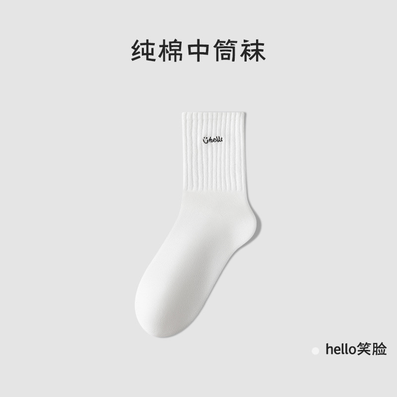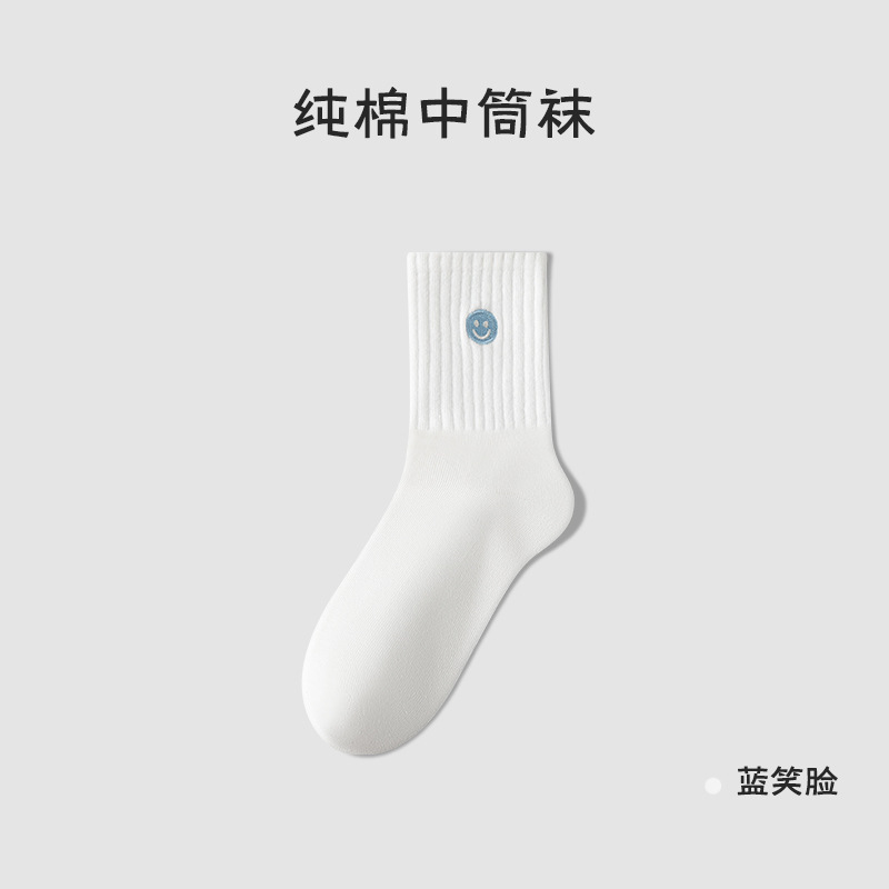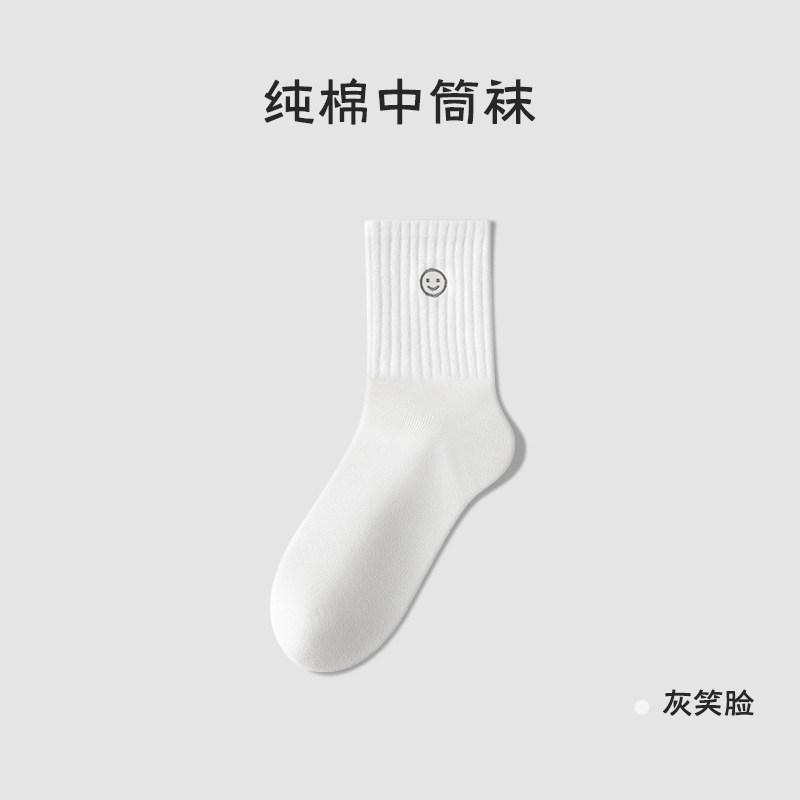 양말 여름 여성 순면 양말 커플 양말 흰색 웃는 얼굴 양말 양말 남성 여름 얇은 Juzhi 양말 스포츠 양말스토어 가기