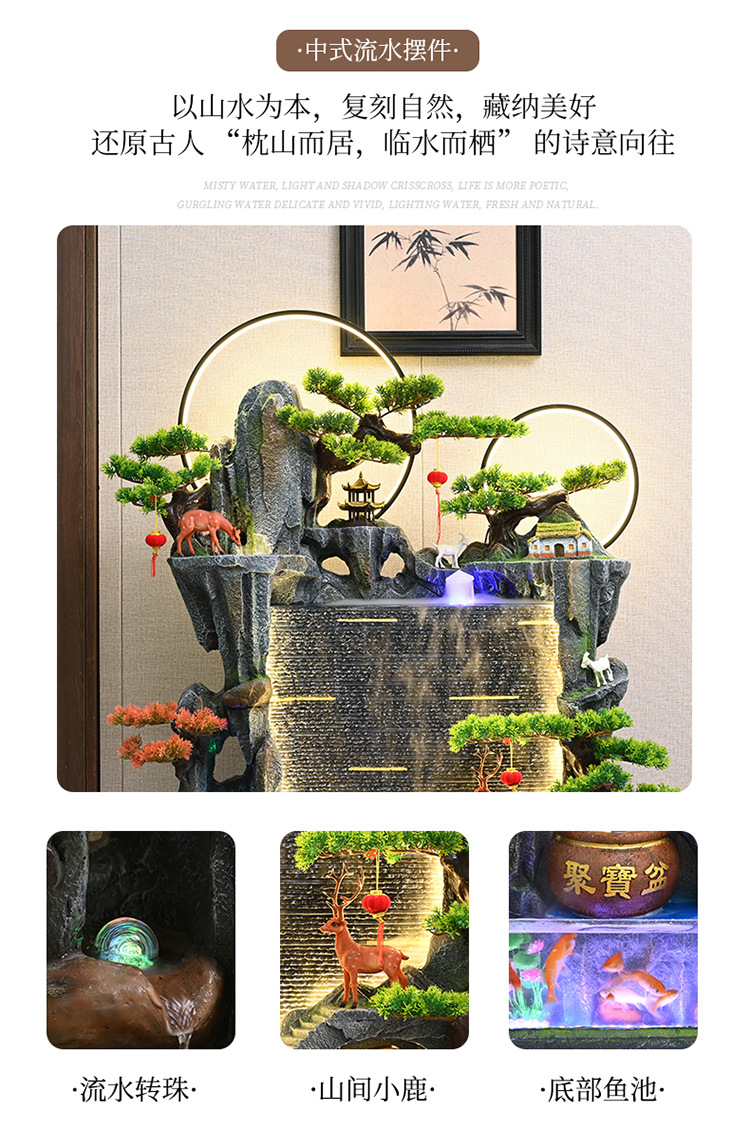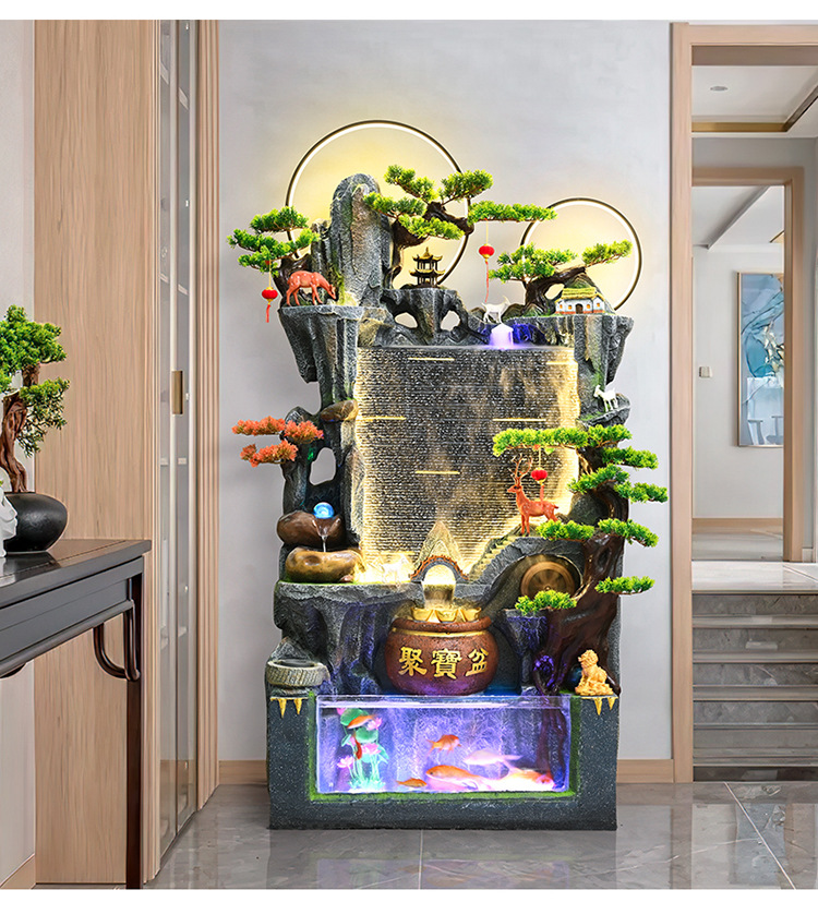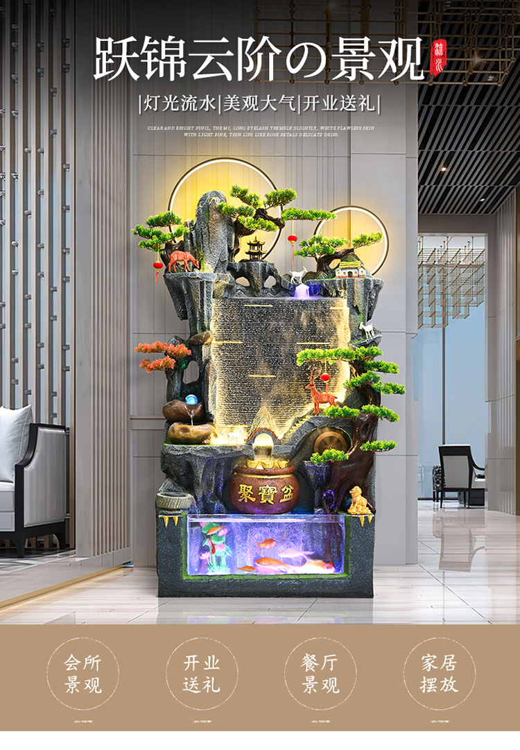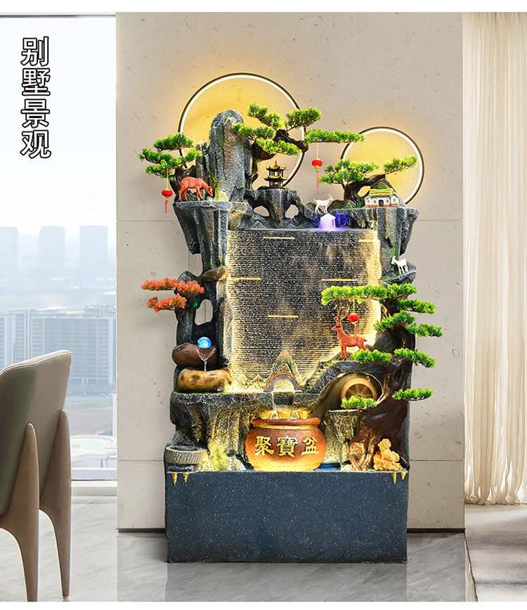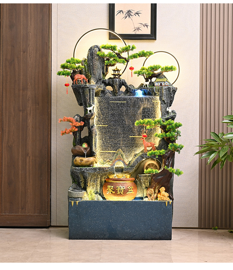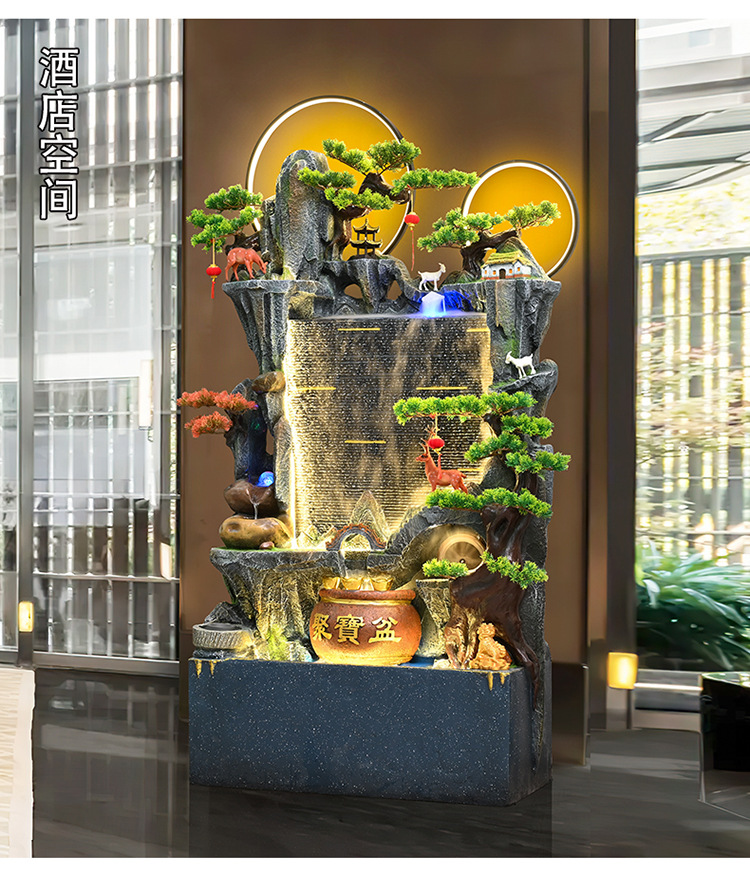 중국식 암석 및 흐르는 물 분수, 거실 입구 장식, 사무실 행운의 물 커튼, 풍경, 집들이 및 개업 장식품스토어 가기