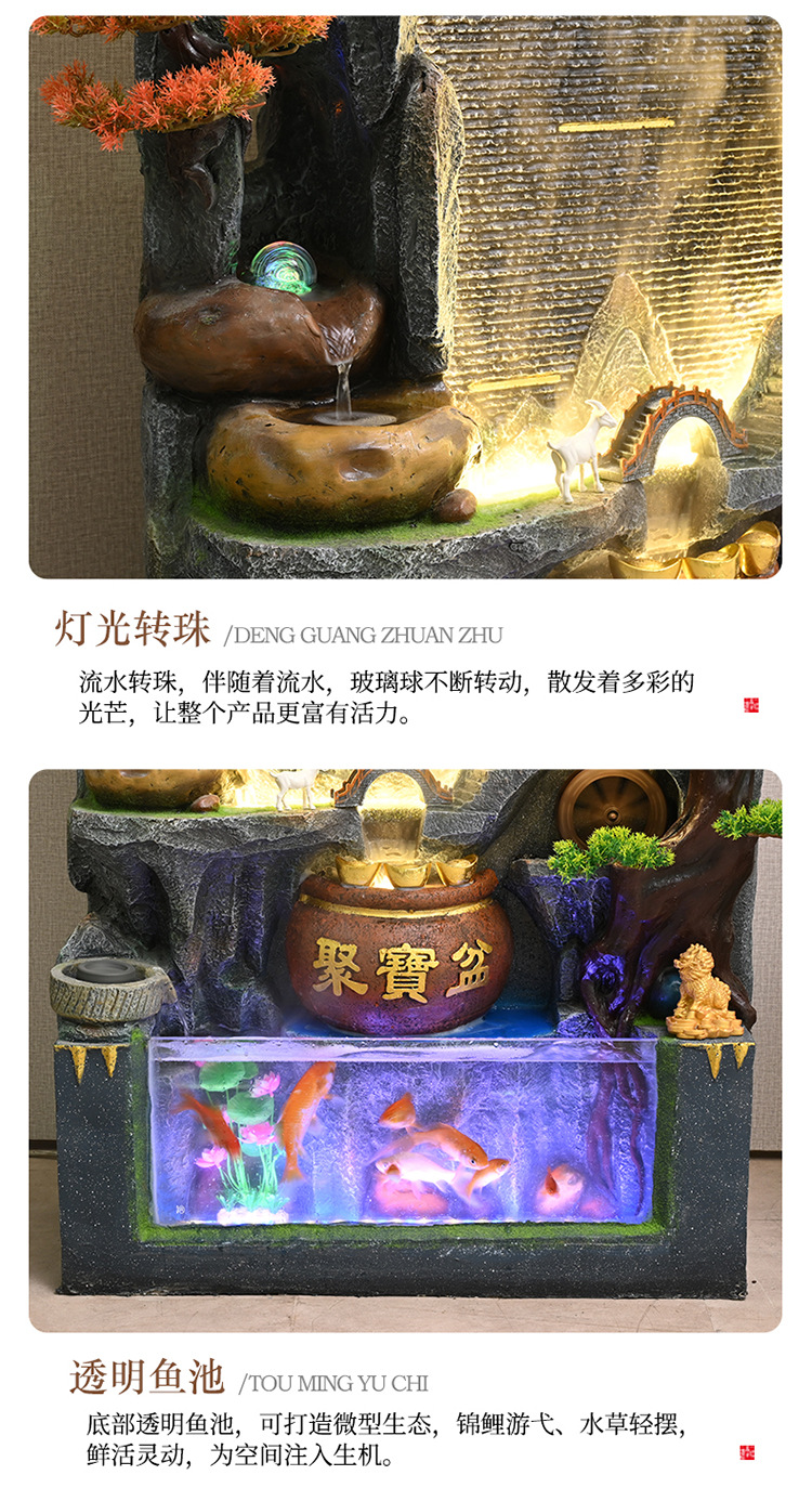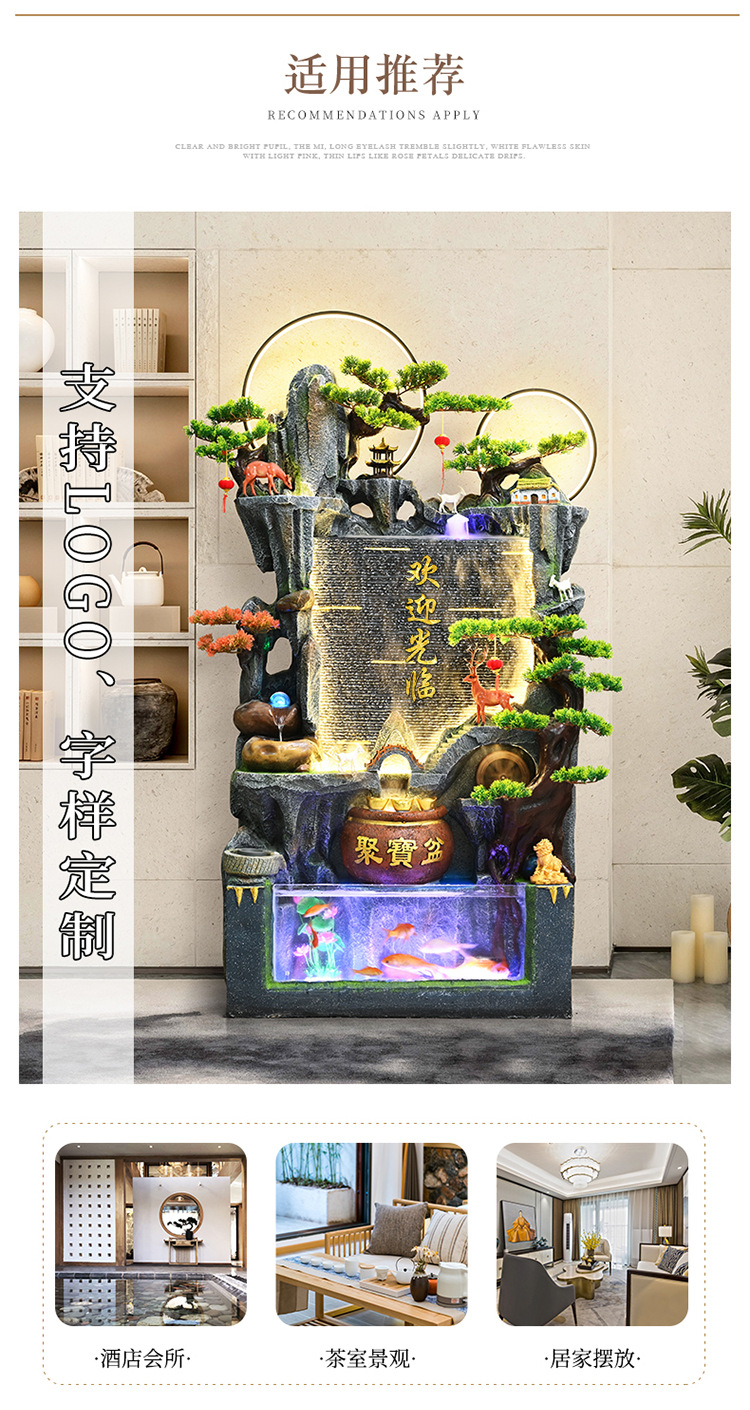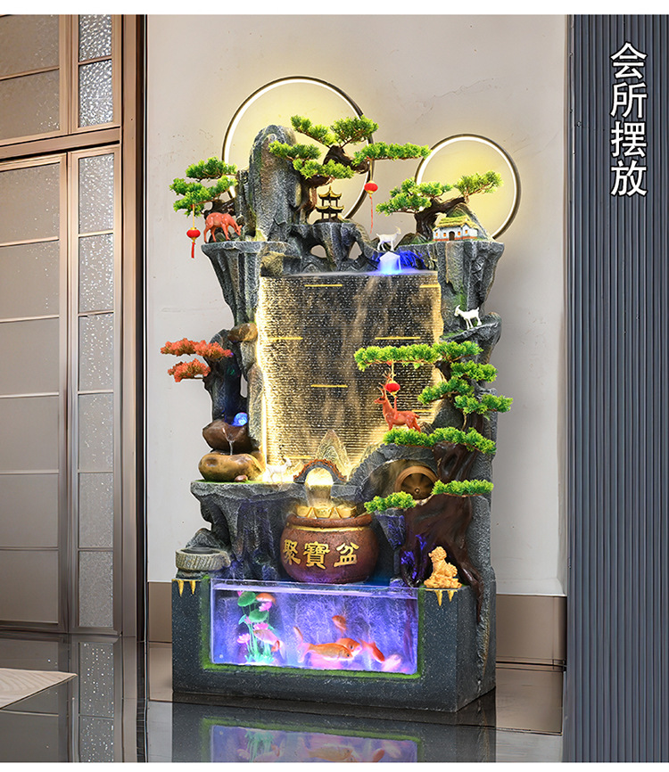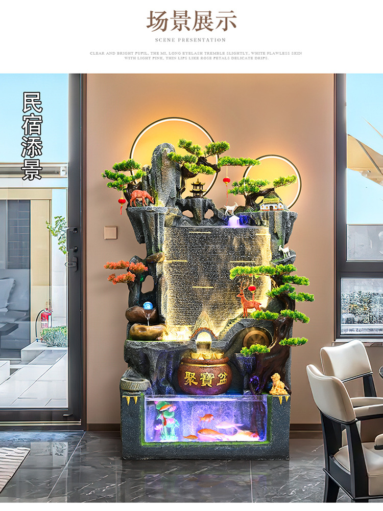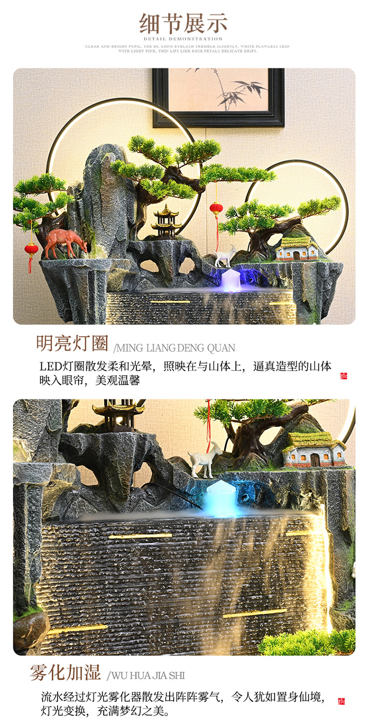 중국식 암석 및 흐르는 물 분수, 거실 입구 장식, 사무실 행운의 물 커튼, 풍경, 집들이 및 개업 장식품스토어 가기