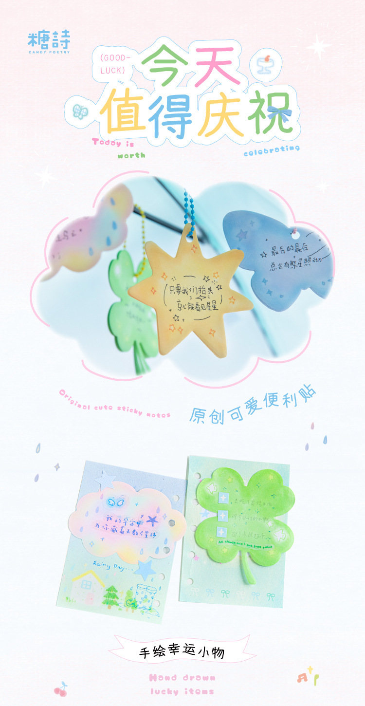 설탕시 특별한 모양의 귀여운 스티커 메모 오늘은 축하할 가치가 있습니다. 시리즈 접착 메모 학생 메시지 메모 메모스토어 가기